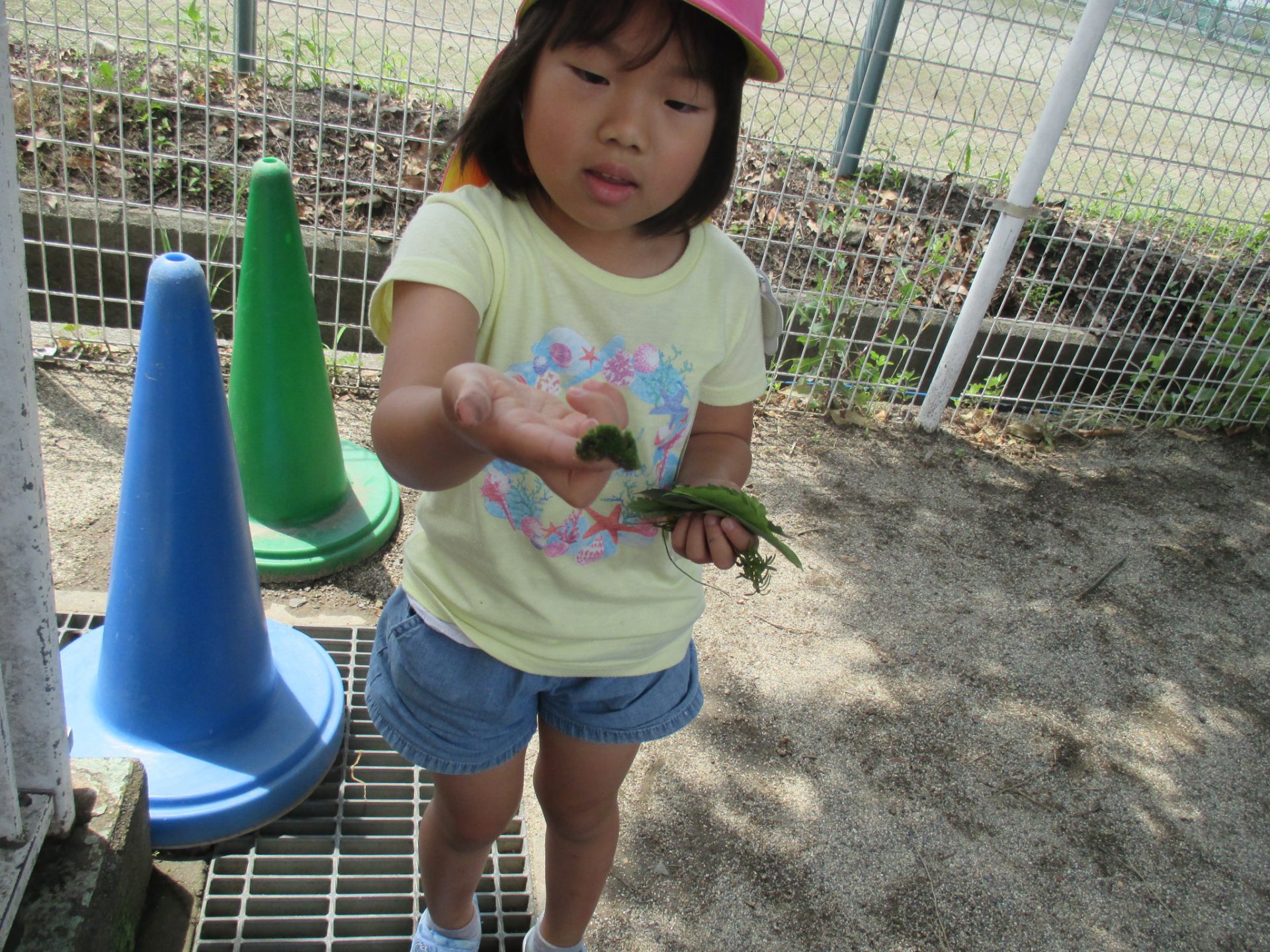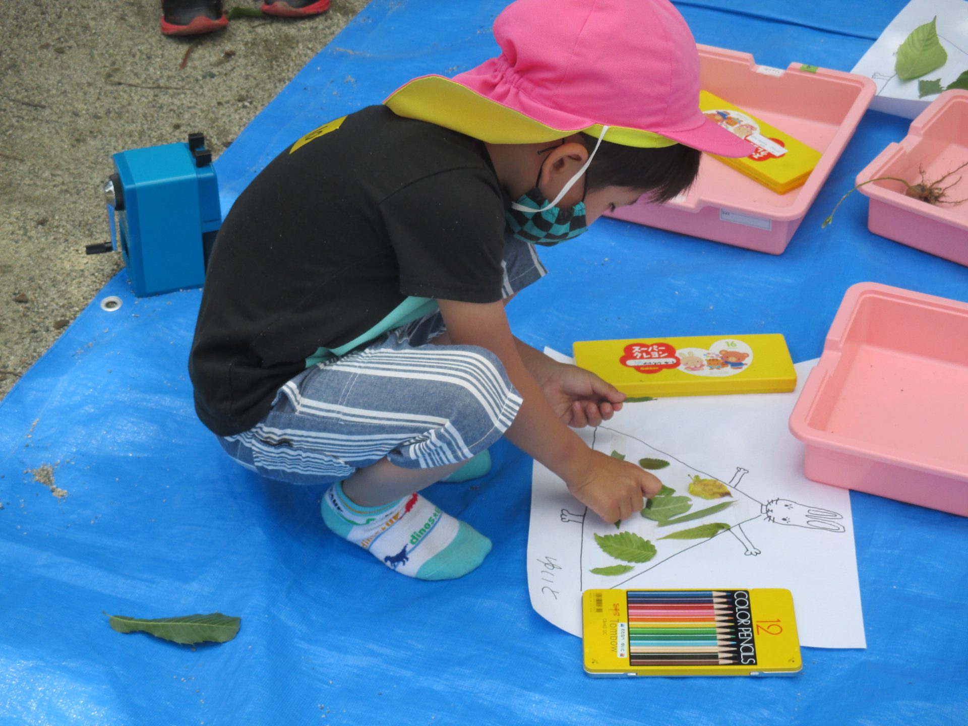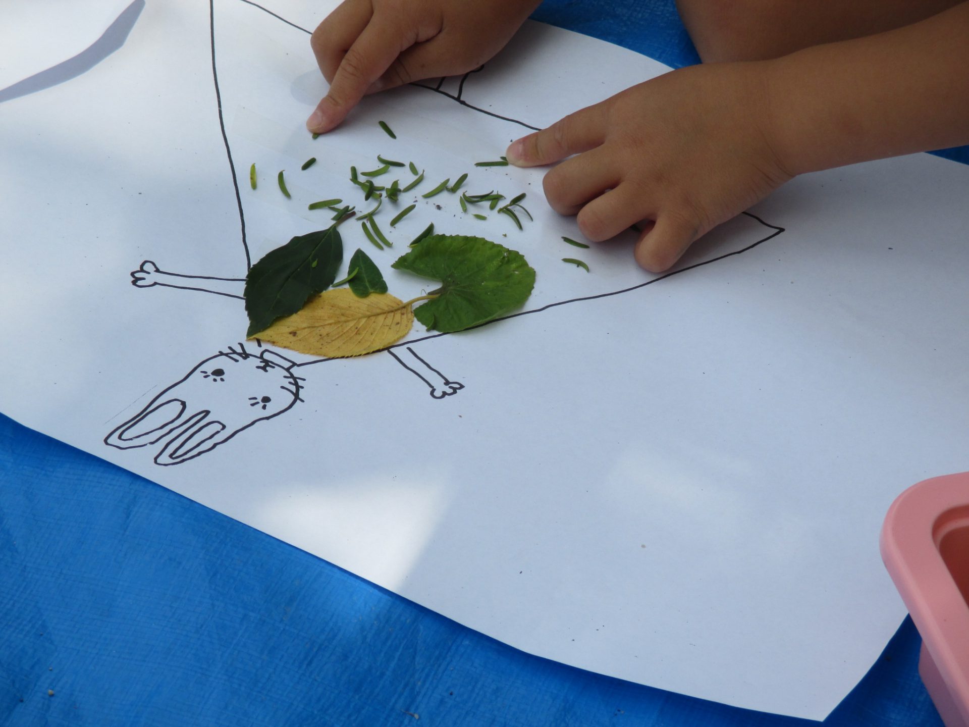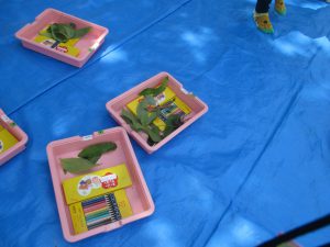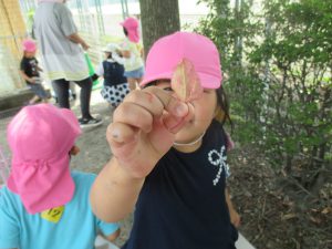 園庭にあるいろいろな葉っぱをみんなで集めました。