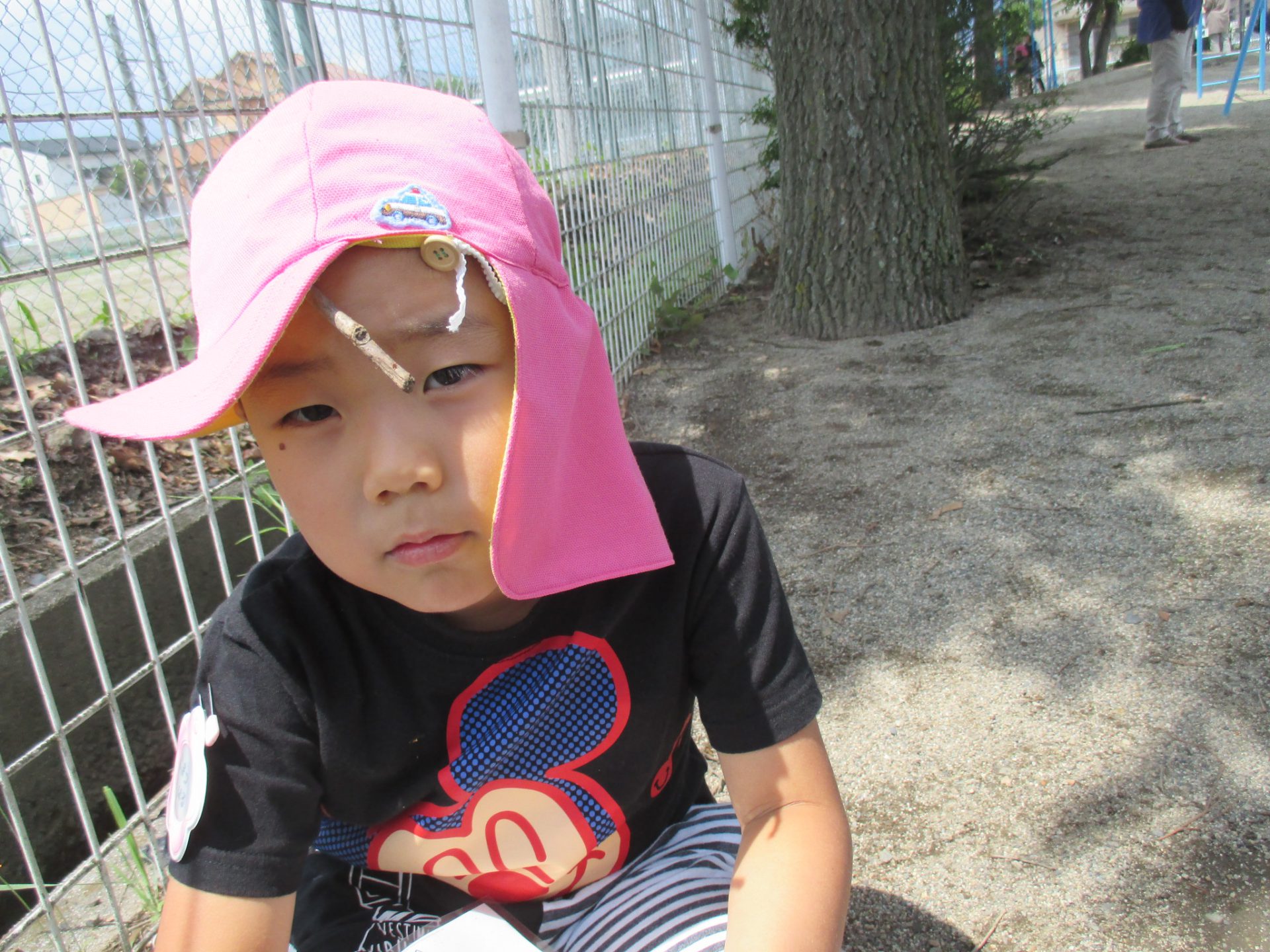 「ピンクの葉っぱ見つけたよ!見てー」
