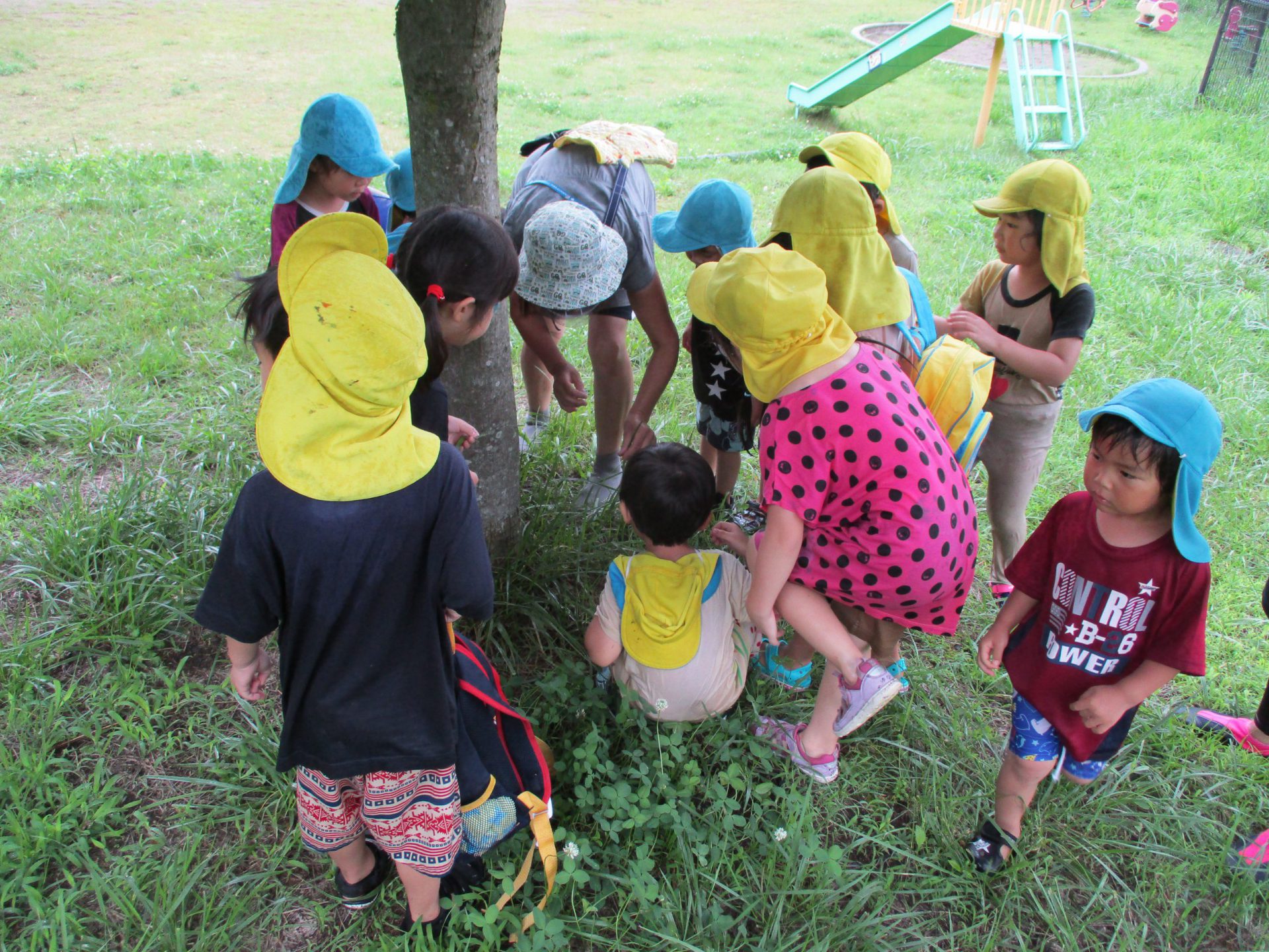 セミの羽化、なんとも言えない神秘的な光景に、子どもたちもじっと静かに観察していました