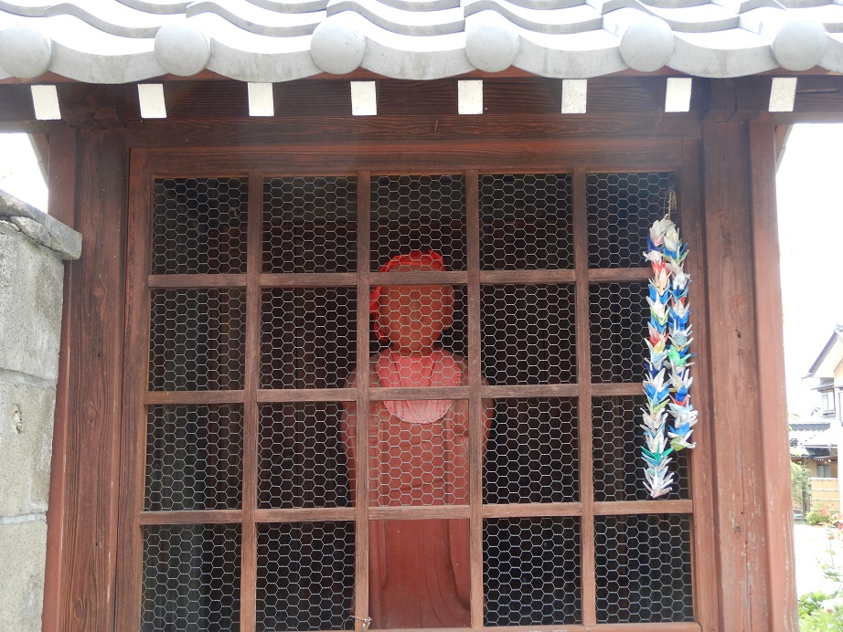 赤じぞうさんを初めて見た子どもたちは興味津々で覗きこんでいました。