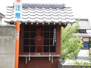 「昔、村の人たちに悪さをしていたガマ(ガマガエルのお化け)を退治してくれたと言われているおじぞうさんです」