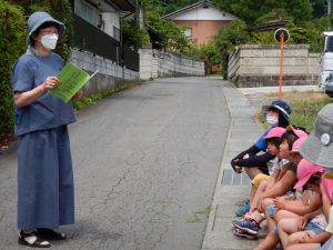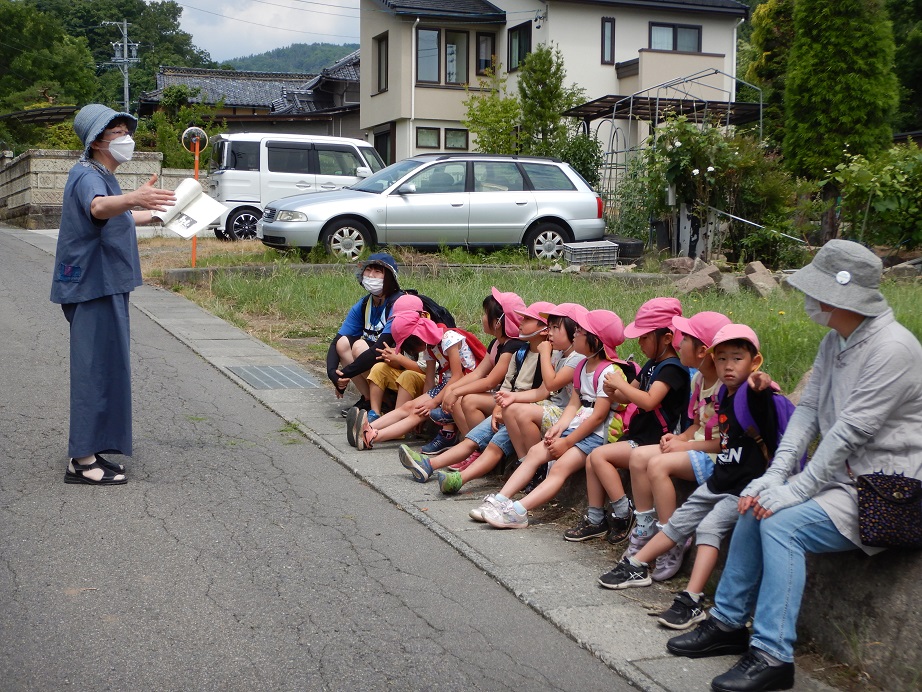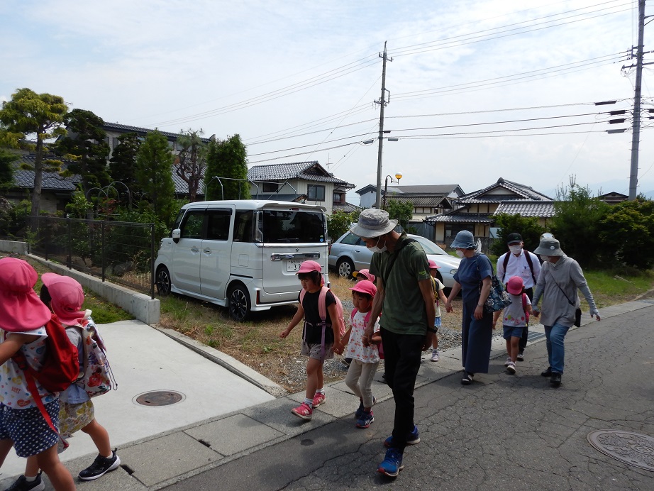 地域の方と楽しく話をしながら現地まで散歩していきました。