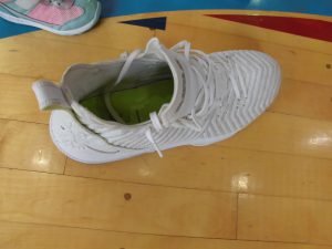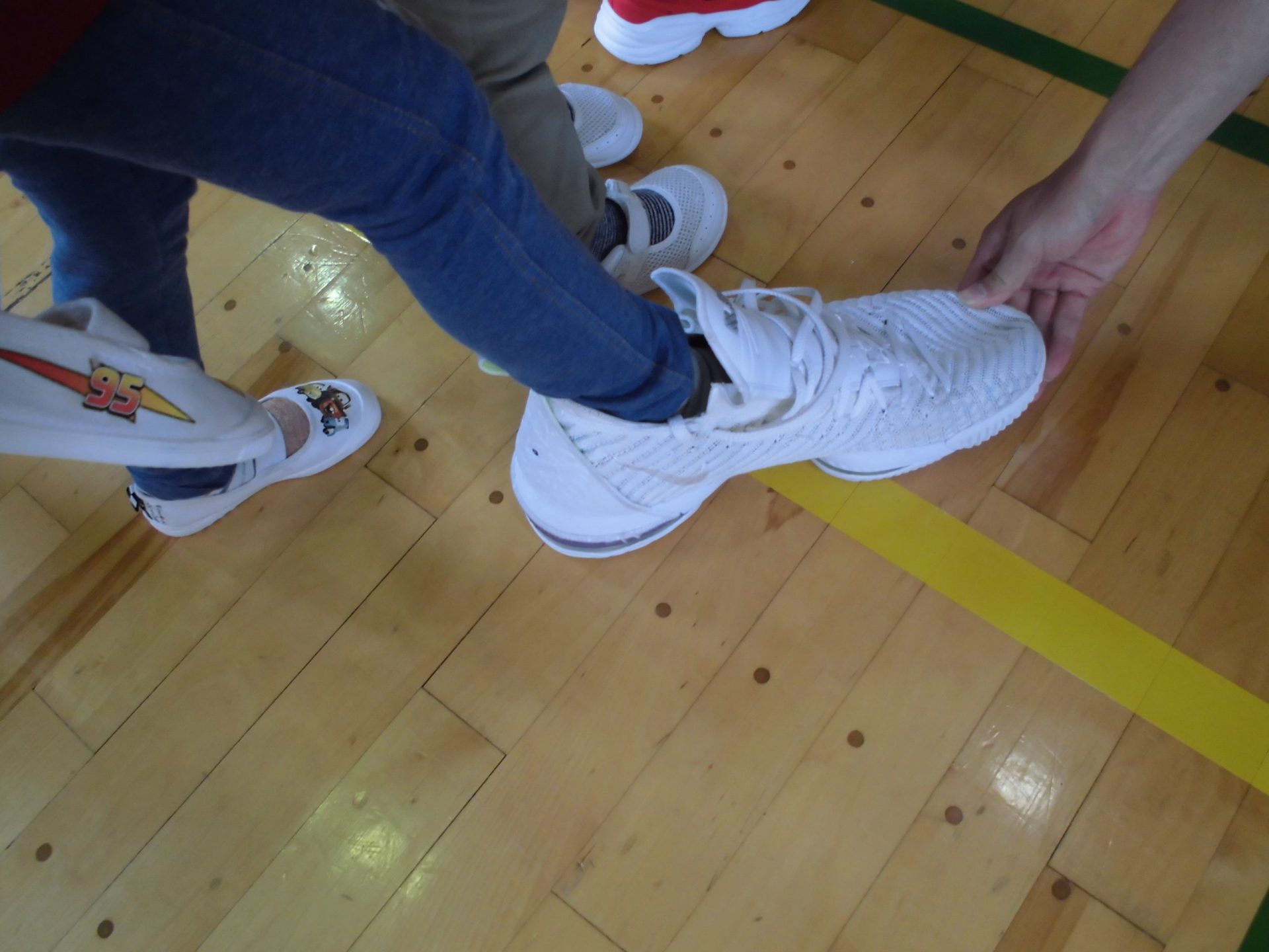 これは、身長2m10cmの選手が履くバスケットシューズ。