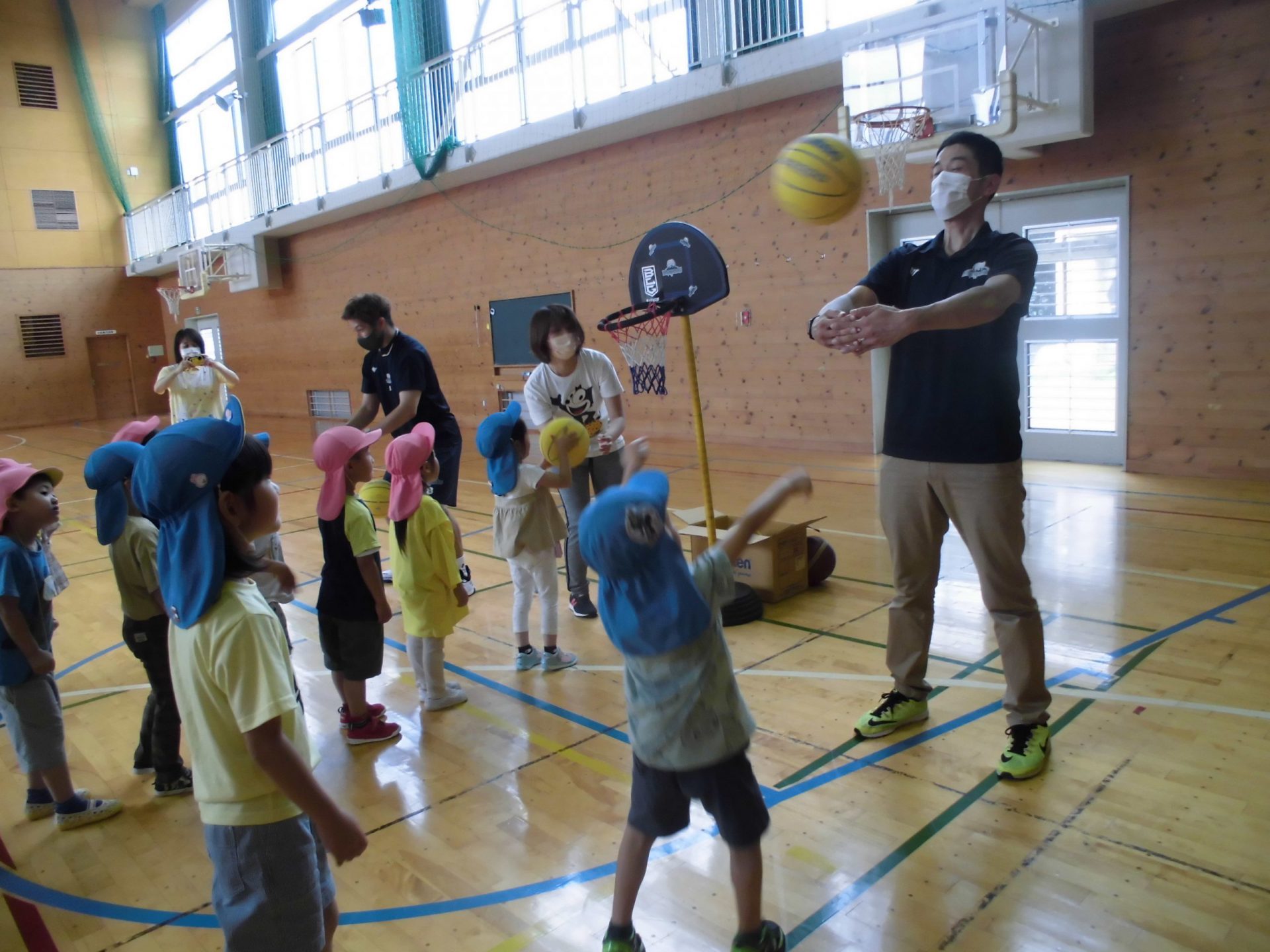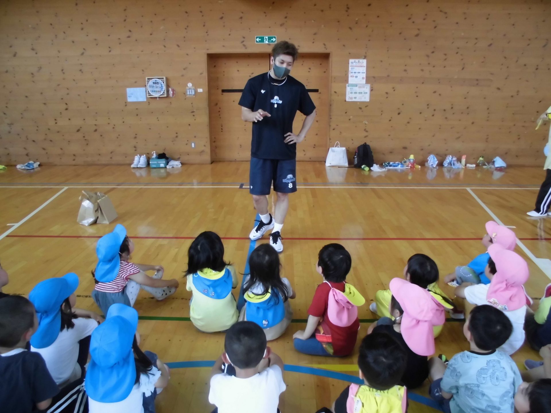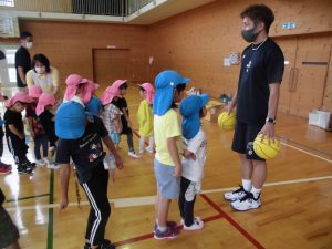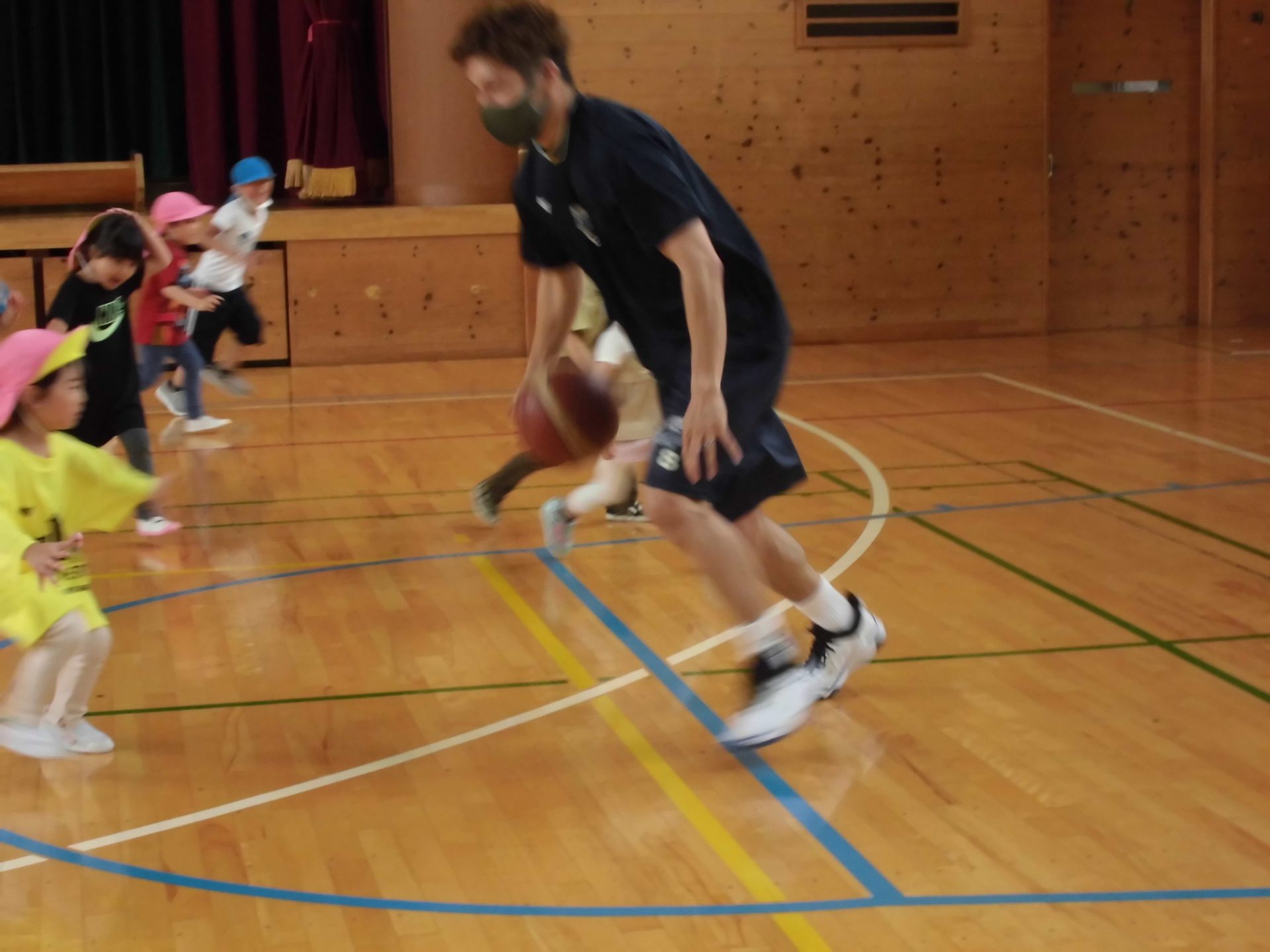小学校の体育館をお借りして『信州ブレイブウォリアーズ(バスケット)』選手と交流をしました。