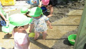 | ・砂場でどろんこ遊びをする。川を作る所から始め、池作りをしたりその中に | ||||||