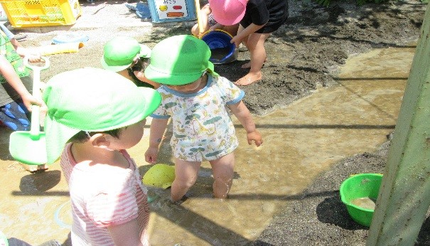 | プールを行う前の暑い日に、何度もどろんこ遊びを行っていた。数人の子と | ||||||