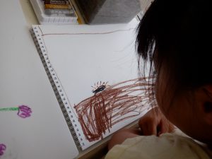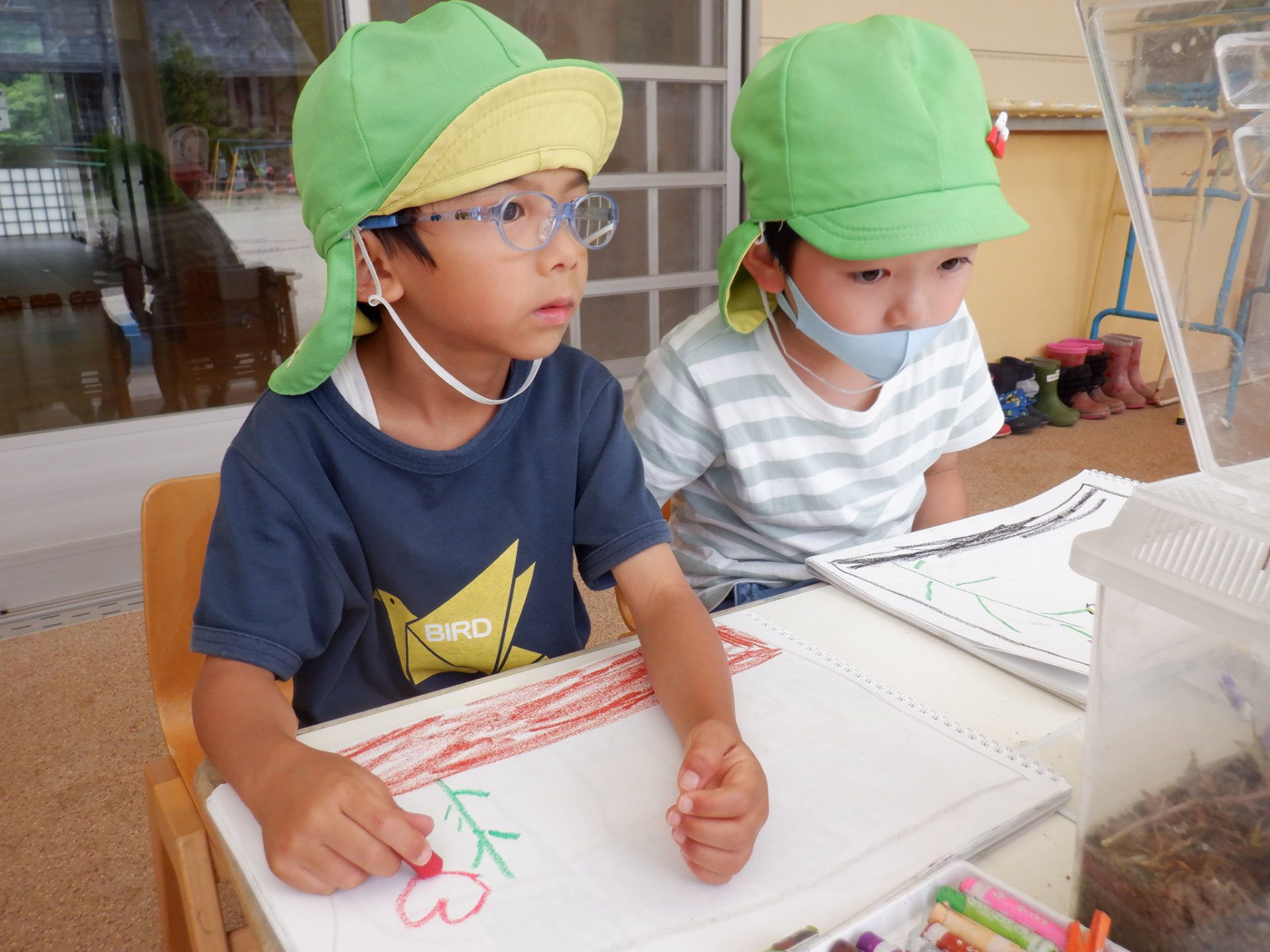 あっくんとそうちゃん、ひーちゃんは自由画帳を持ち出して、記録をとっておくようです。