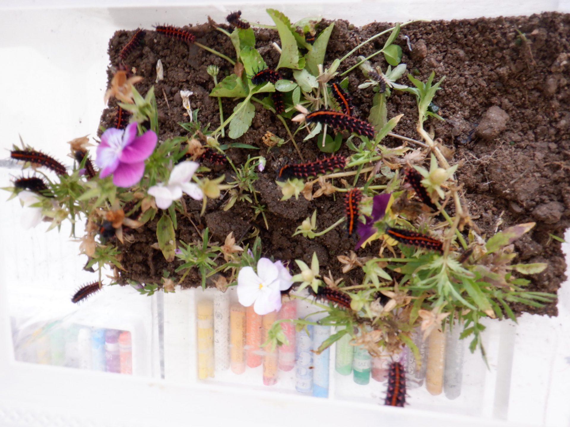 食べるものがなくなってると、ヴィオラやパンジーの葉っぱなどを取ってきてあげることも忘れません。
