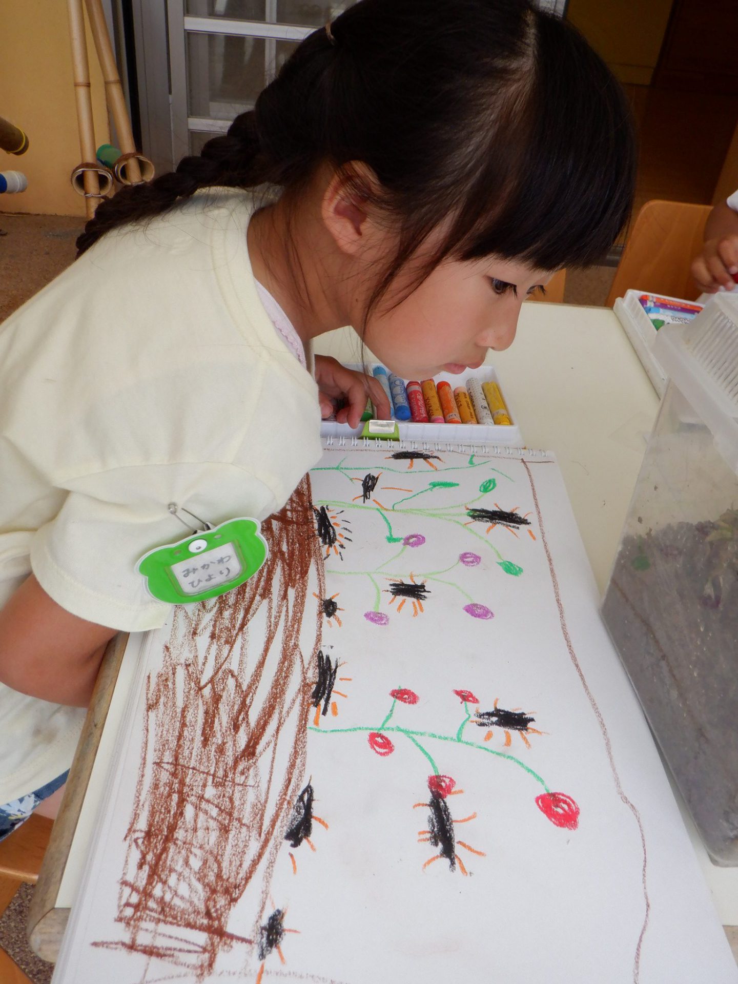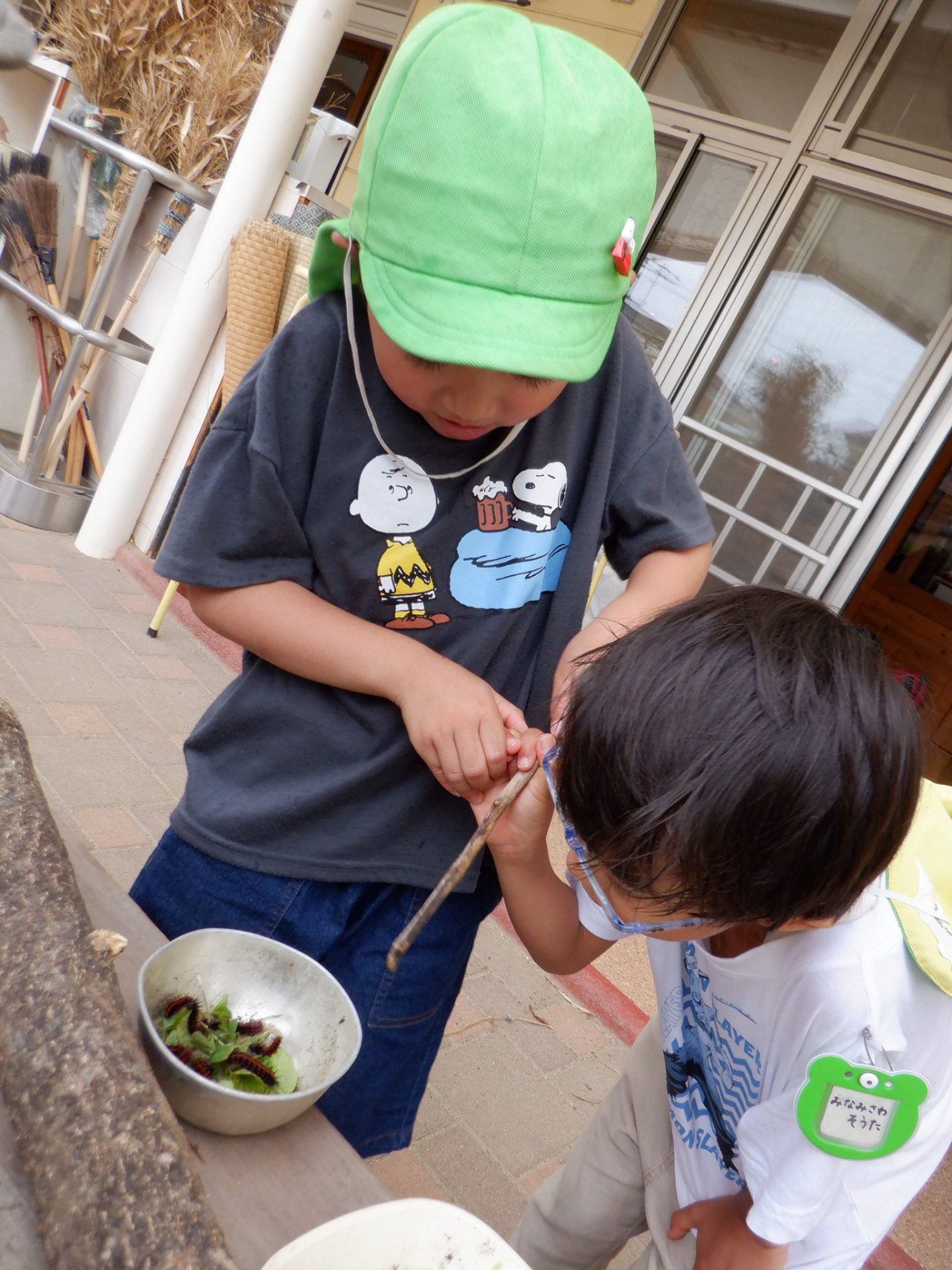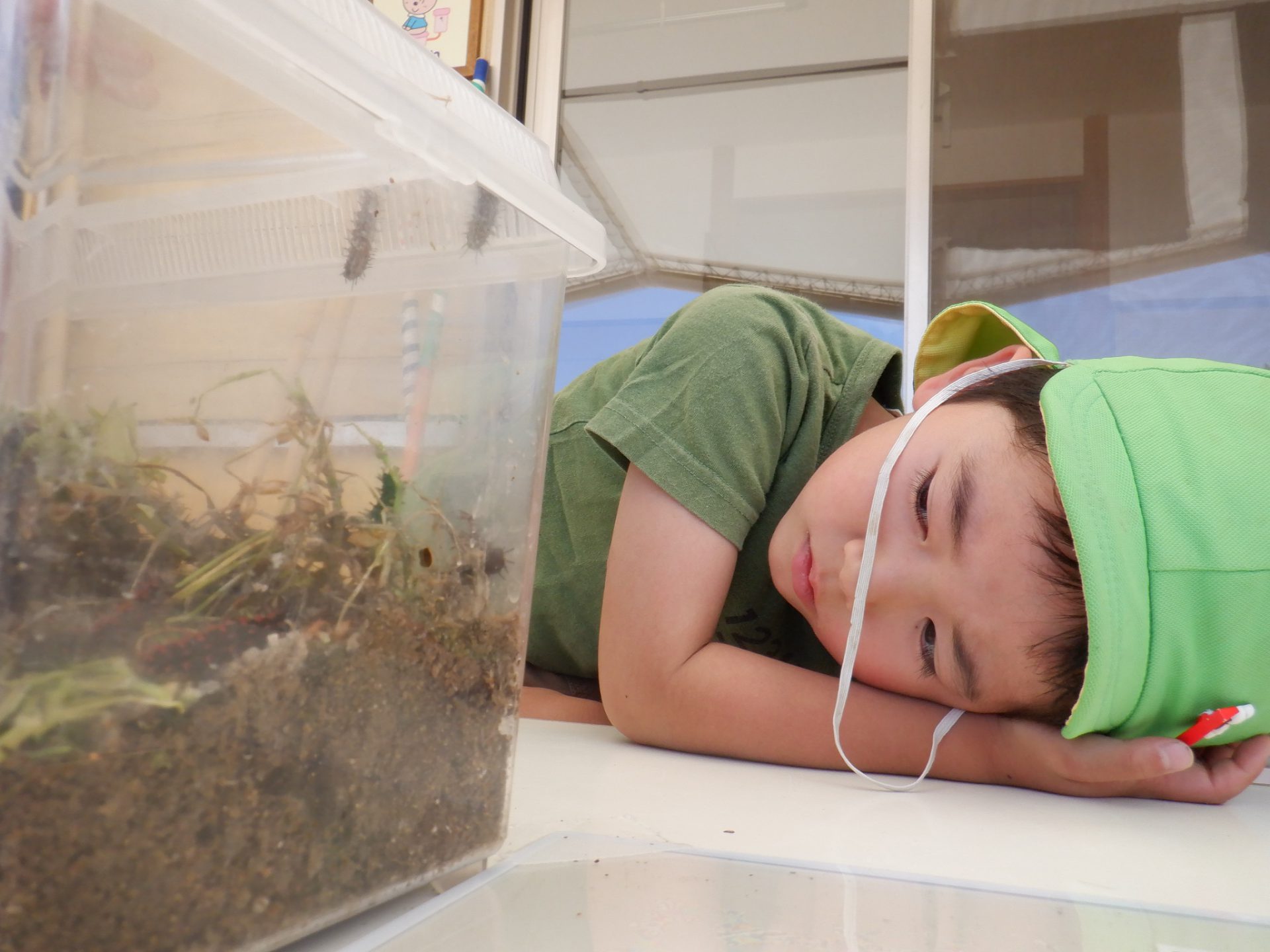 毎日、観察していく中で、毛虫に名前をつけて愛着を持って育てている姿を見ると、子どもたちに命を大切にする気持ちや、変化していく姿に不思議さなどを一緒に感じていきたいと思います。