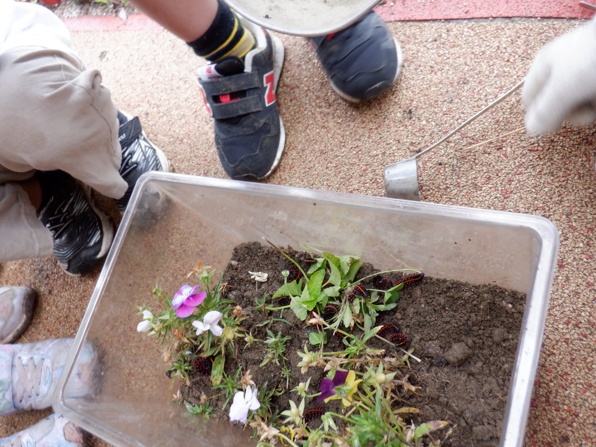 花が終わってきたパンジーを入れて、飼うことにしました。