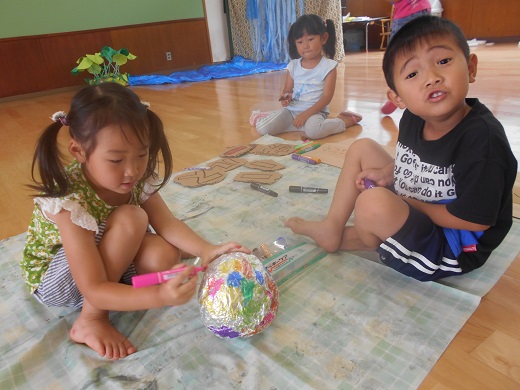 特に年長さんは話し合いを重ねながら、イメージを共有し、同じ目的に向かい制作活動に取り組みました。
