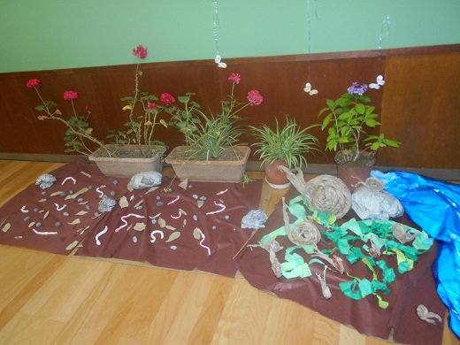年長さんは、『あつまれ!なかじょうの虫大集合』のコーナーづくり。