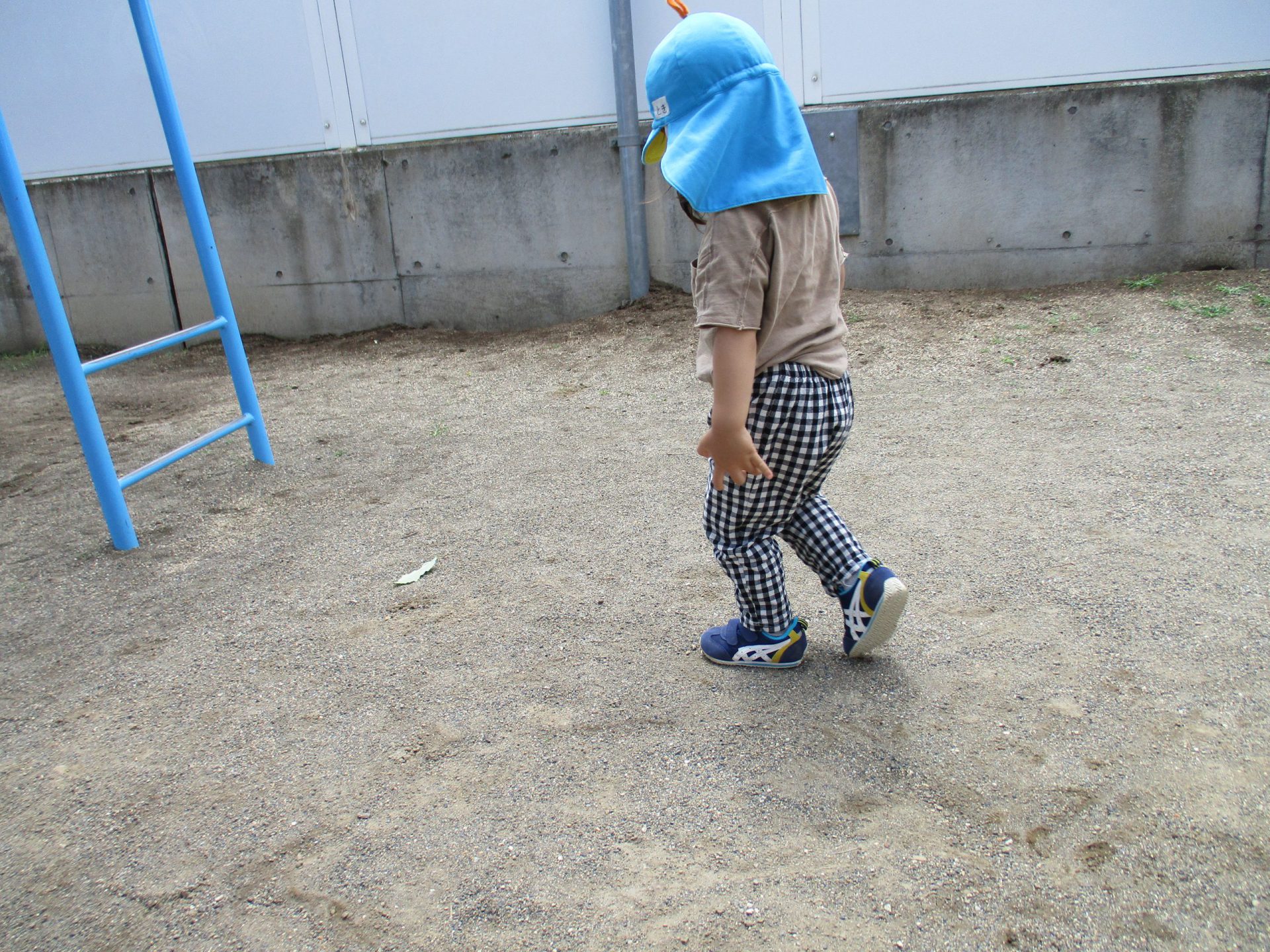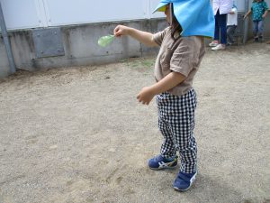 先月、梅雨の合間の曇り空の日に園庭に出て遊びました。