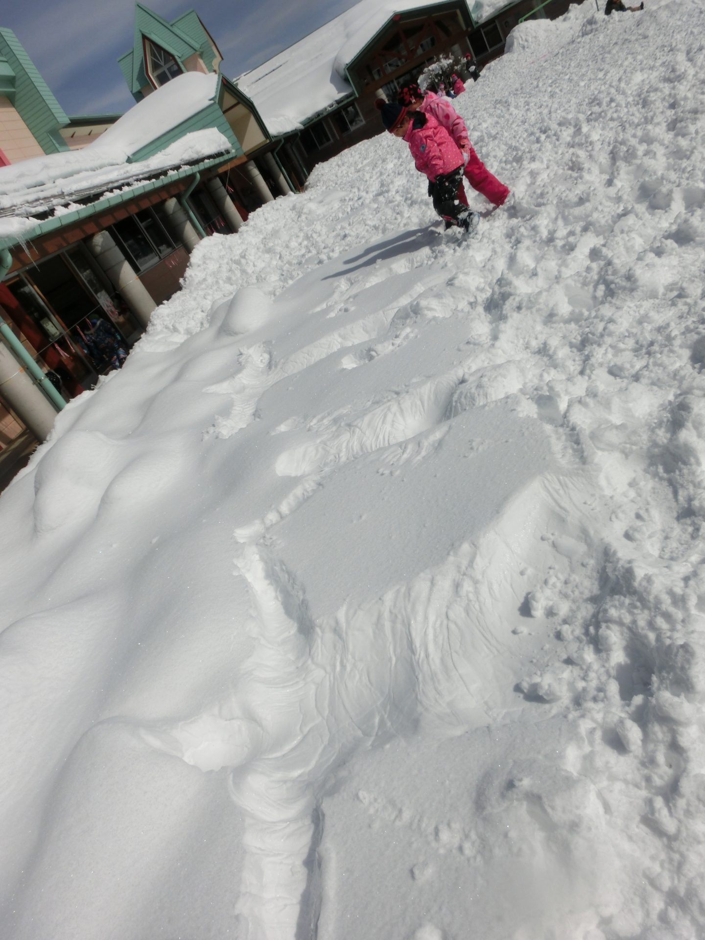 園庭の隅っこにはまだ踏まれていない新雪が・・・。