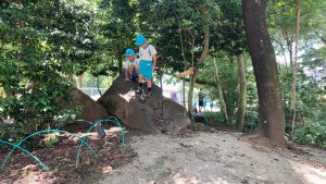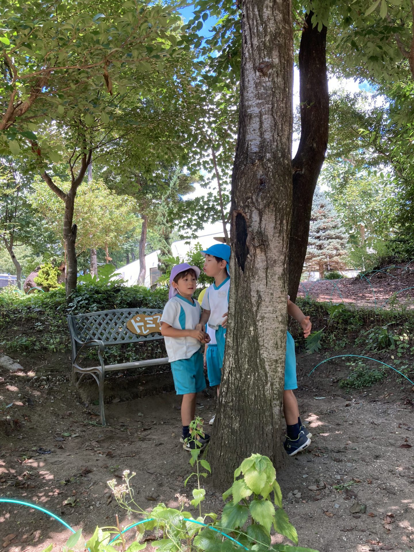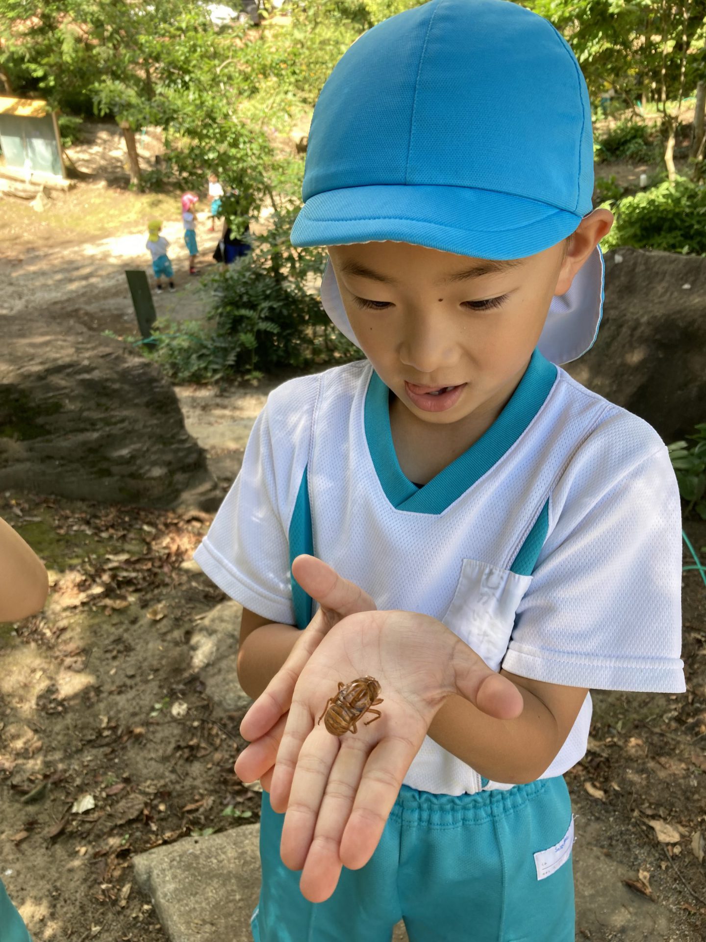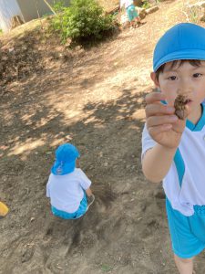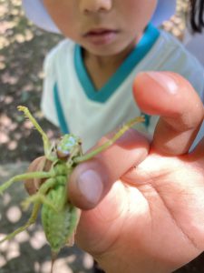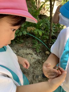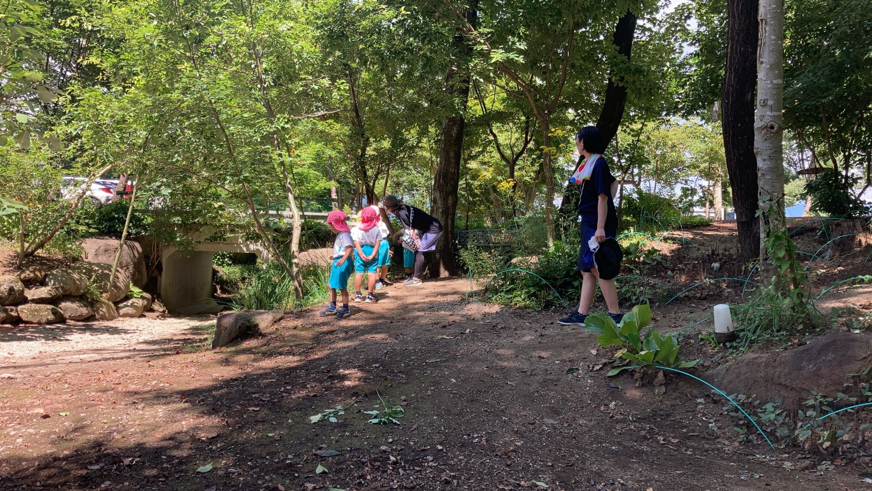 虫発見だけでなく、フィールドを走り回ったり、友達とおいかけっこやだるまさんが転んだをして楽しんだり一人一人が好きなことを見つけ自然を感じながら遊んでいます。
