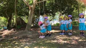 木の陰になったブランコも人気です。お友達と「1・2・3・・・・」と数え合って、順番でブランコを楽しんでいます。