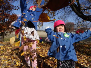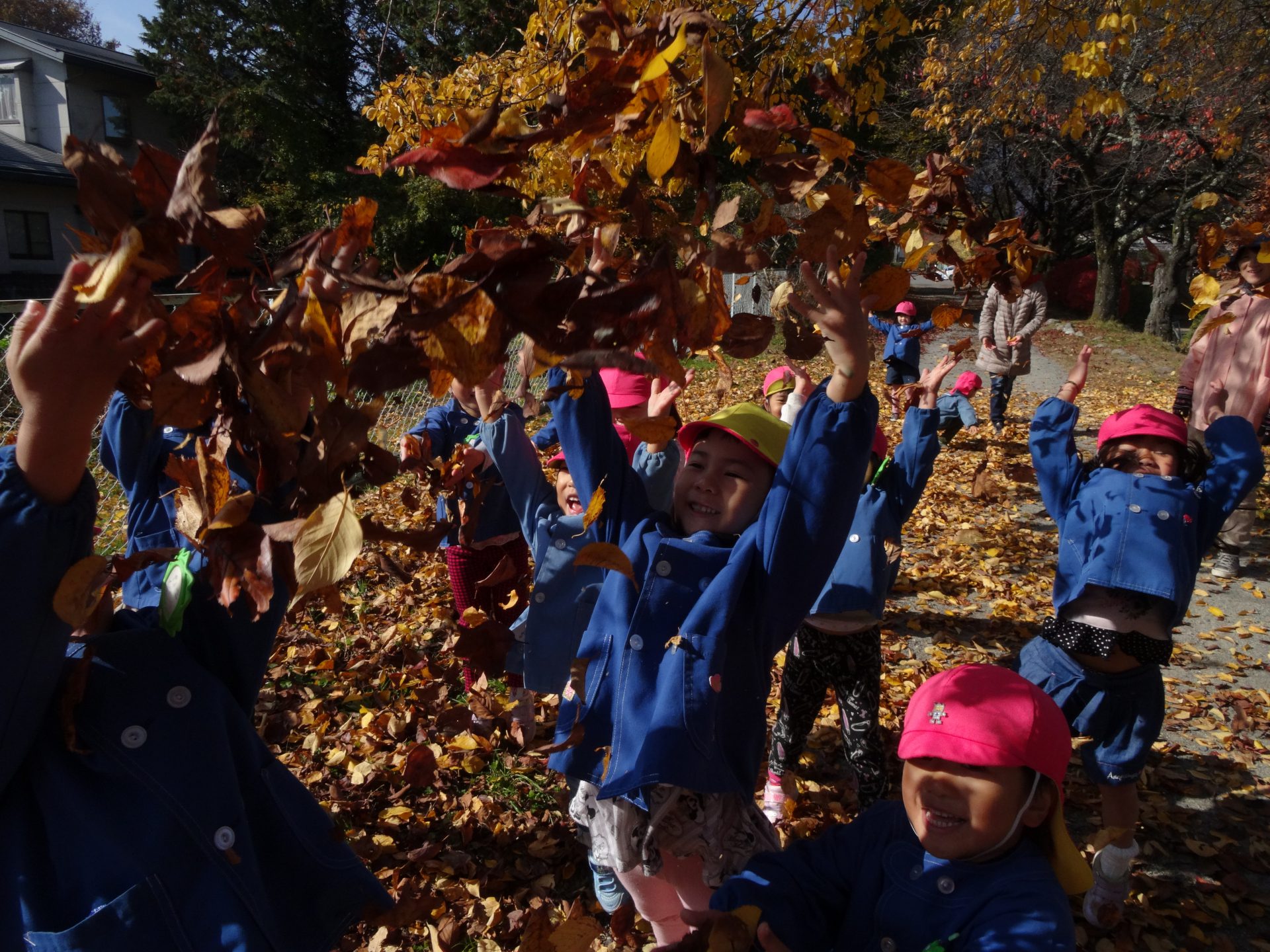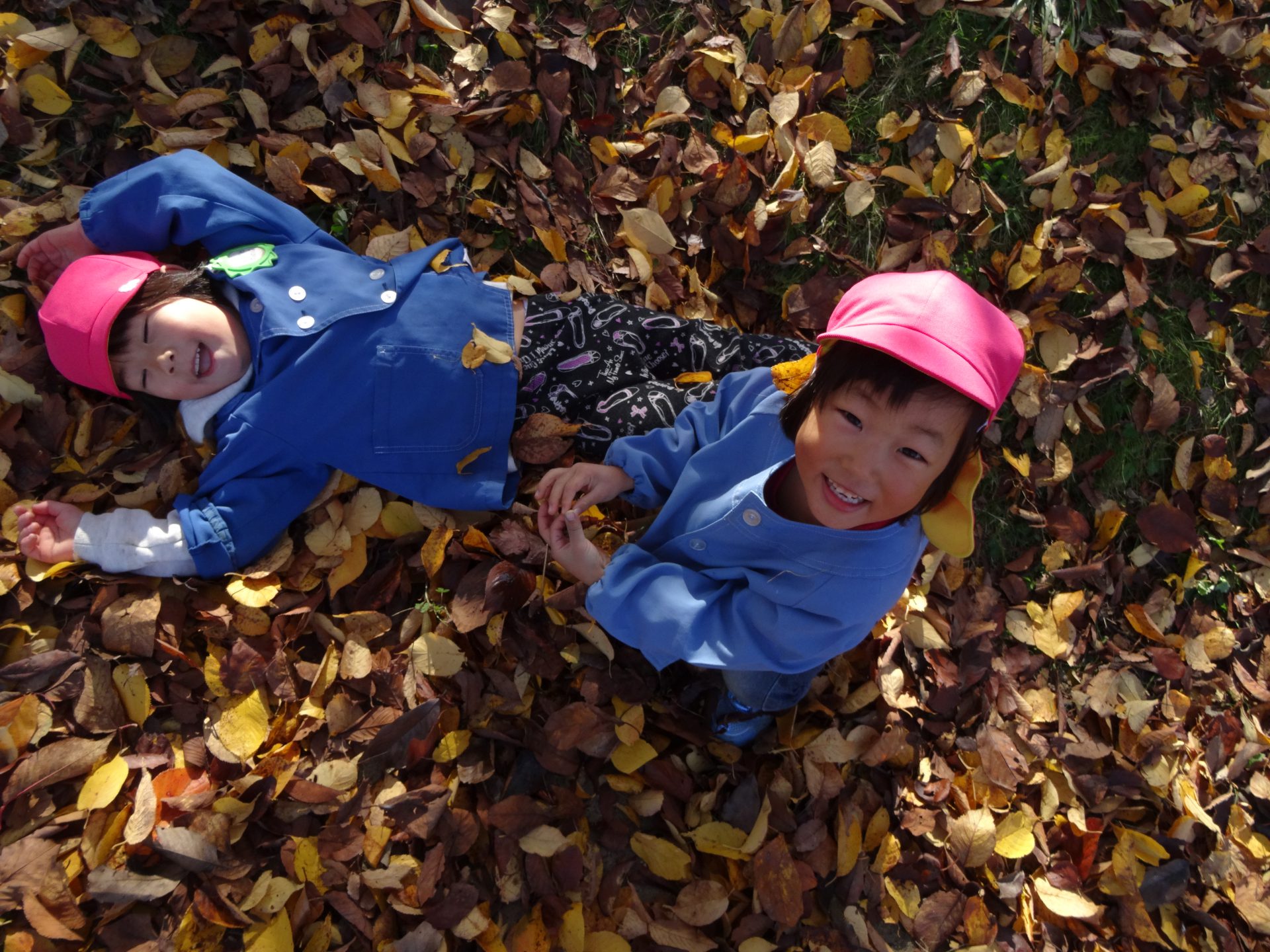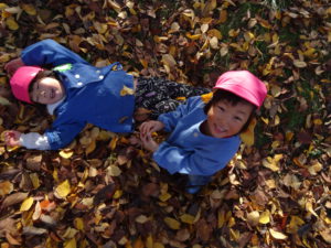 「葉っぱがいっぱい落ちてる」 「カサカサって音がするね♪」