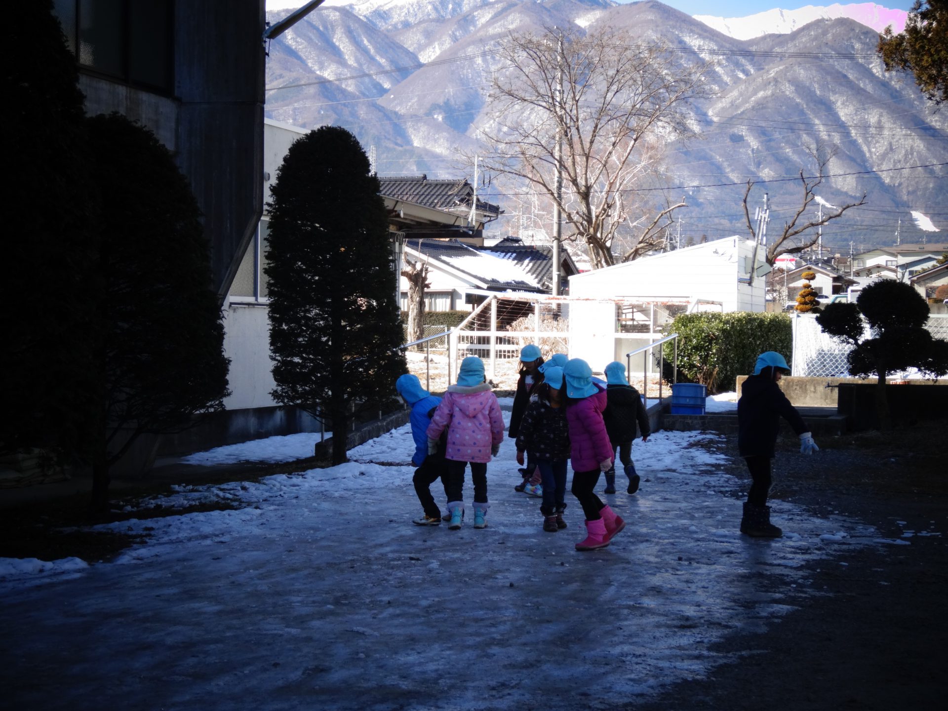自分が滑って大変だった子は友達に注意をしてあげ、またそれを面白いと思える子はどう楽しもうかと考えている。色々経験し自然の良い所・怖い所を知って楽しく遊んでいきたい。