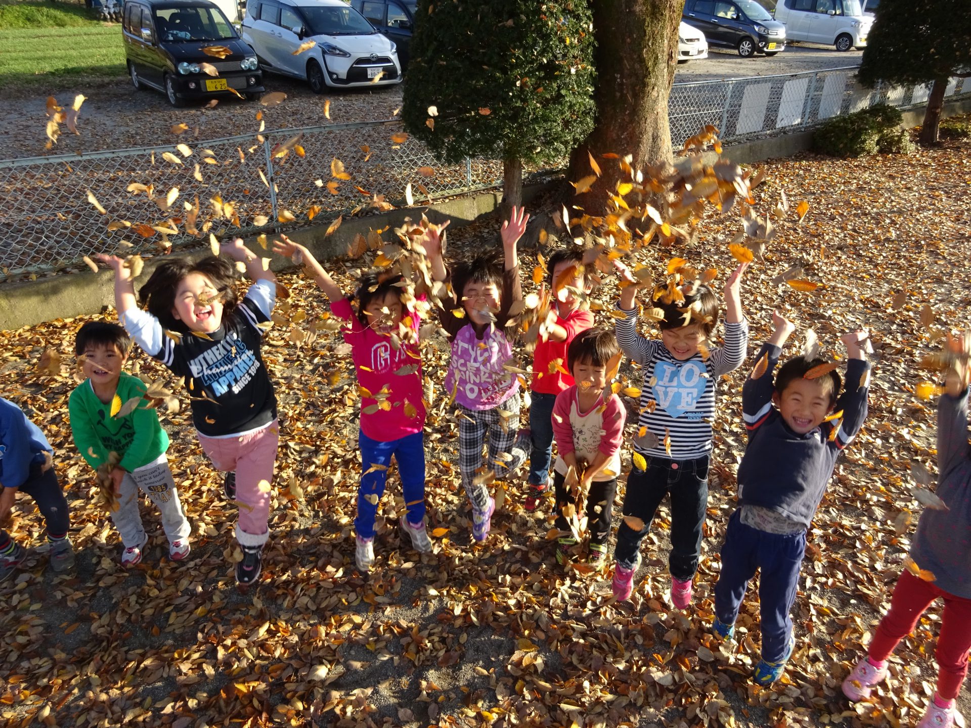 ・大きなけやきの木から舞い落ちる葉と戯れて、ダイナミックな遊びができる環境は、とてもありがたいことです。