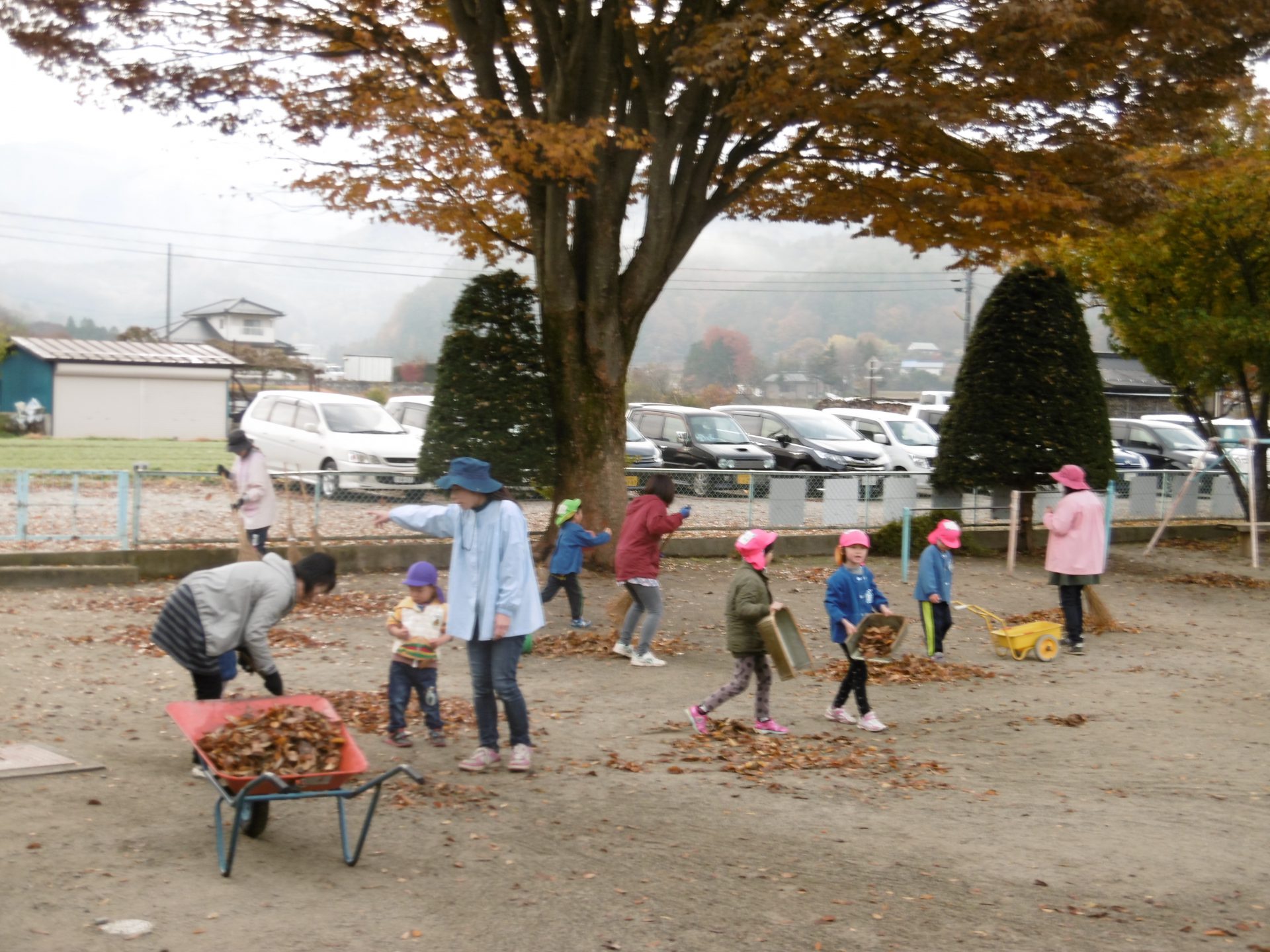 ・庭一面の落ち葉も、子どもたちの片付け屋さんに手伝ってもらうと、あっという間にきれいになり、楽しみながら落ち葉の片付けをしてくれた子どもたちのパワーに感謝でした。