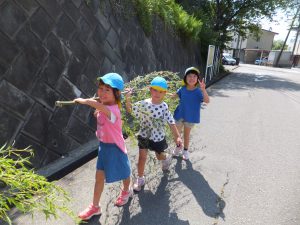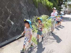 毎年この時期になると、保育園近くの竹林を所有している方のところへ、七夕の竹をいただきに行きます。