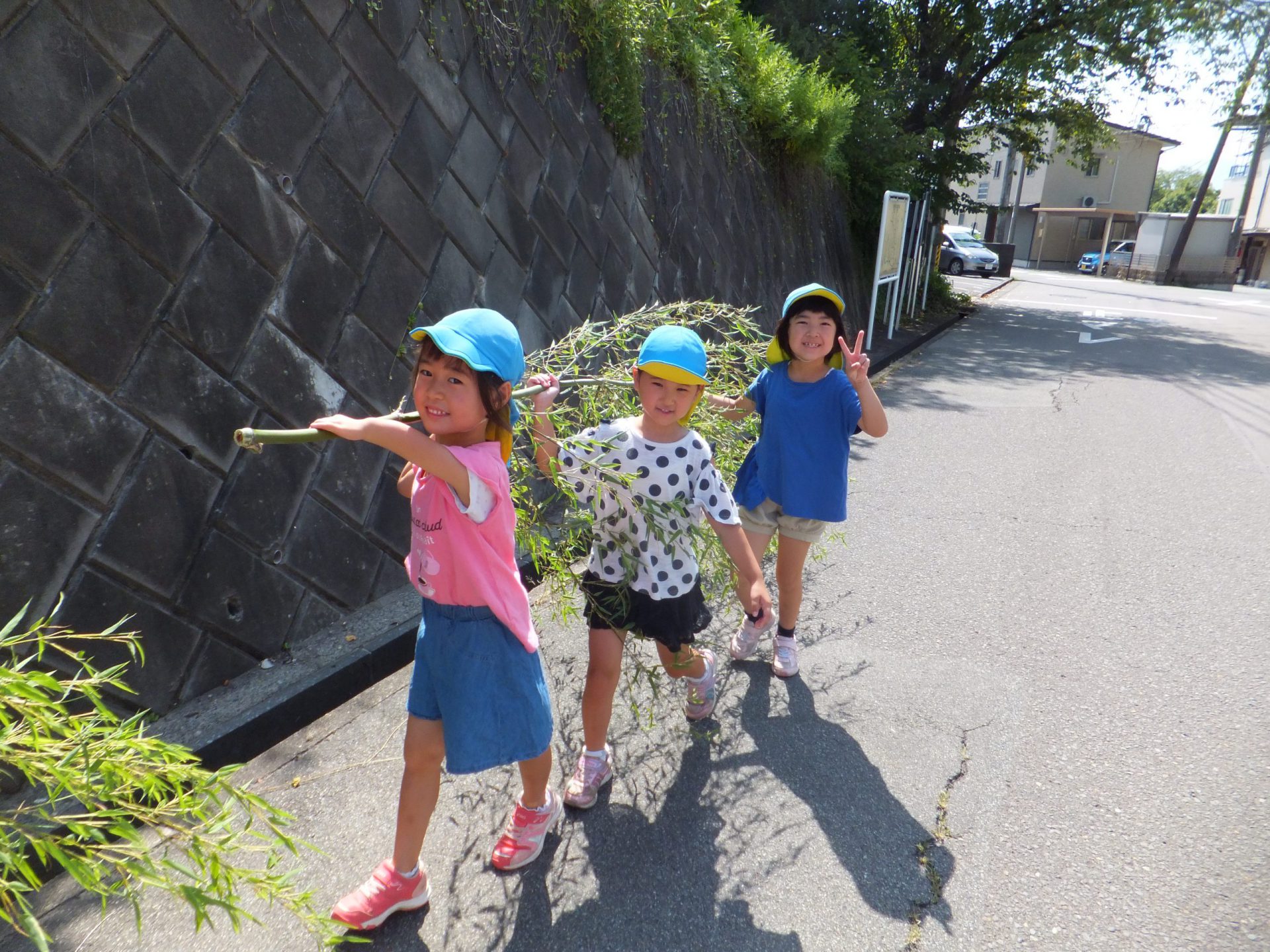 みんな、笹の葉と戦いながら保育園まで持ってきました。