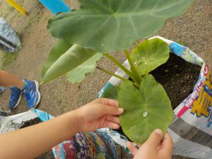 年長さんは、春に里芋の苗植えをしました。
