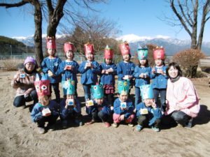 ・節分の鬼はこわくて仕方なかった子どもたちですが、育てた大豆を使って、しっかり鬼退治することができ、心も成長できました。