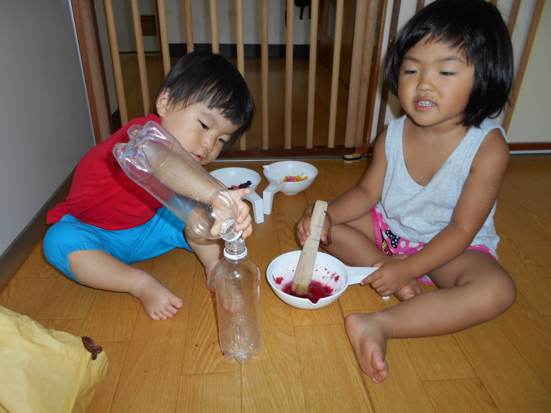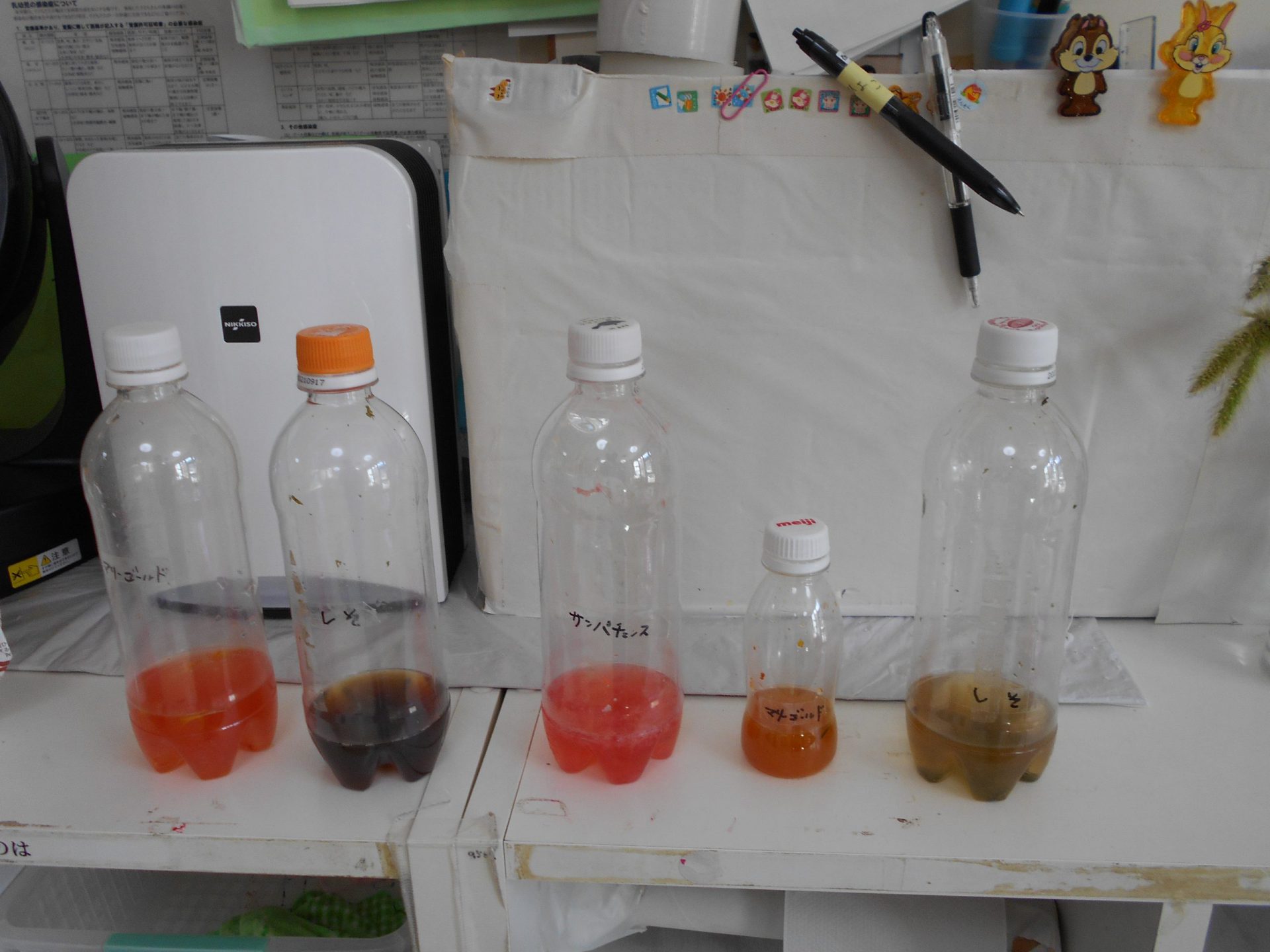 きれいな色になったから、ペットボトルに入れてジュースにしよう!