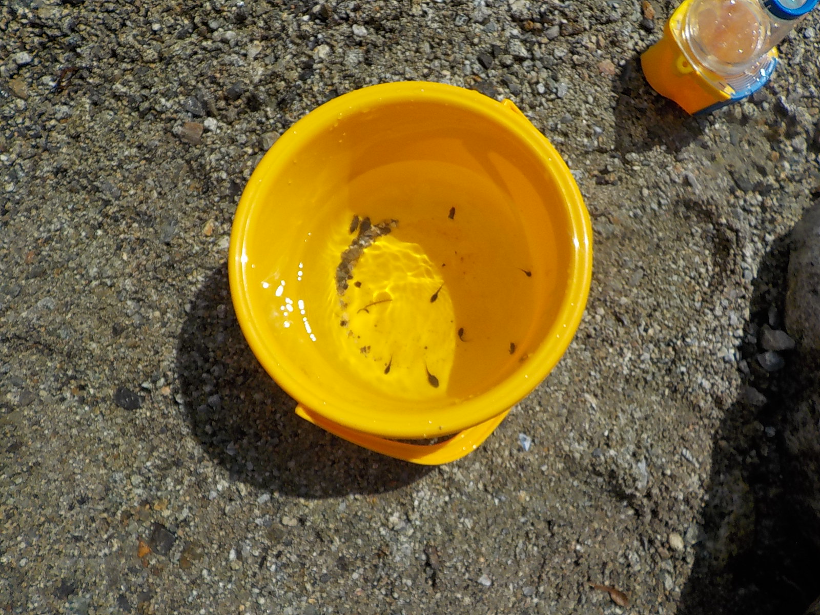 おたまじゃくしがいっぱい。でも捕まえたあとは川に戻します。キャッチアンドリリースです。
