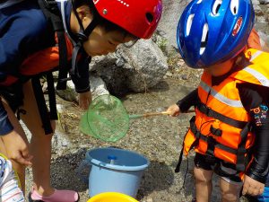 こちらでは水辺の生き物探しです。なにかいいもの見つけたかな?
