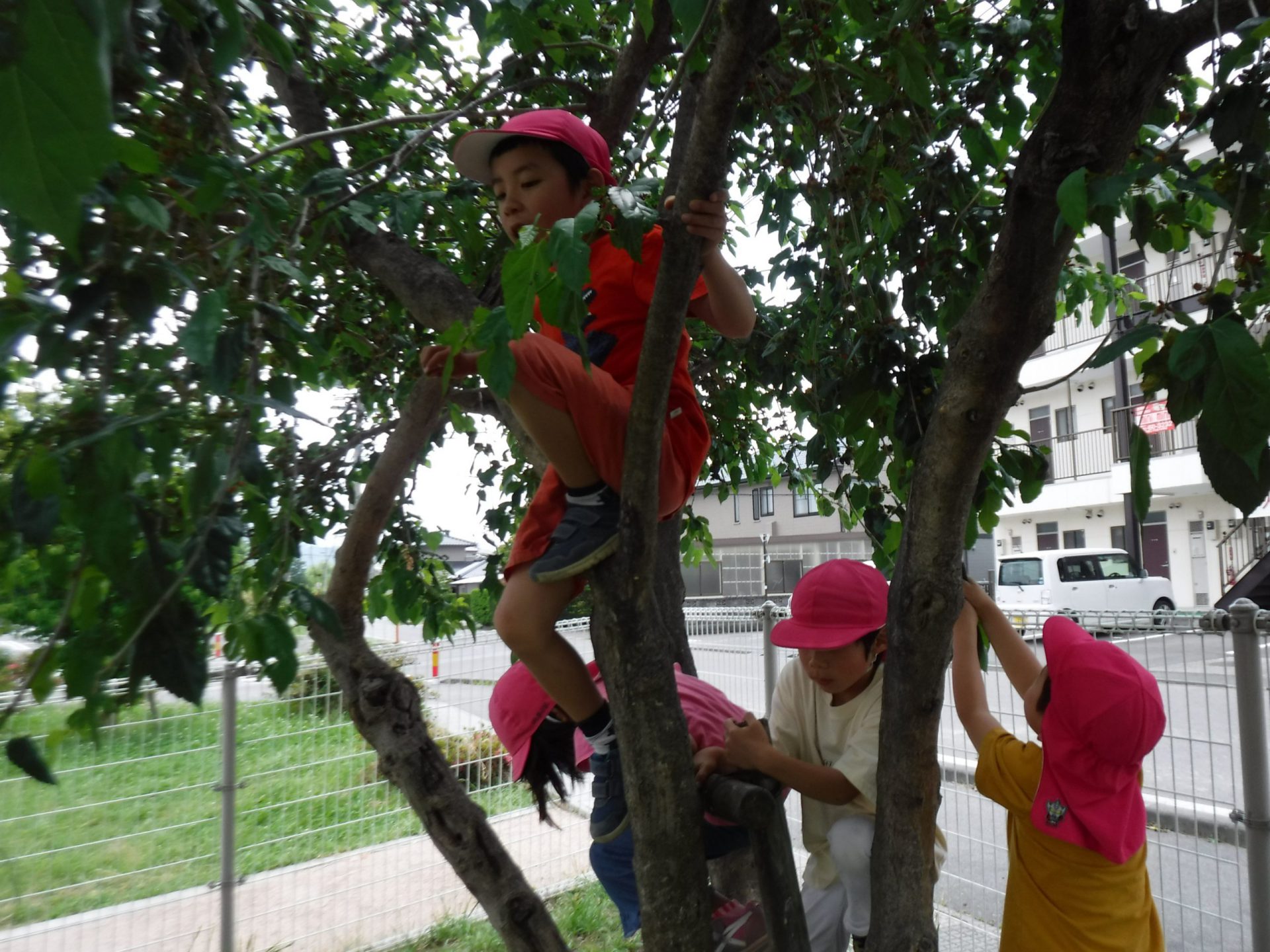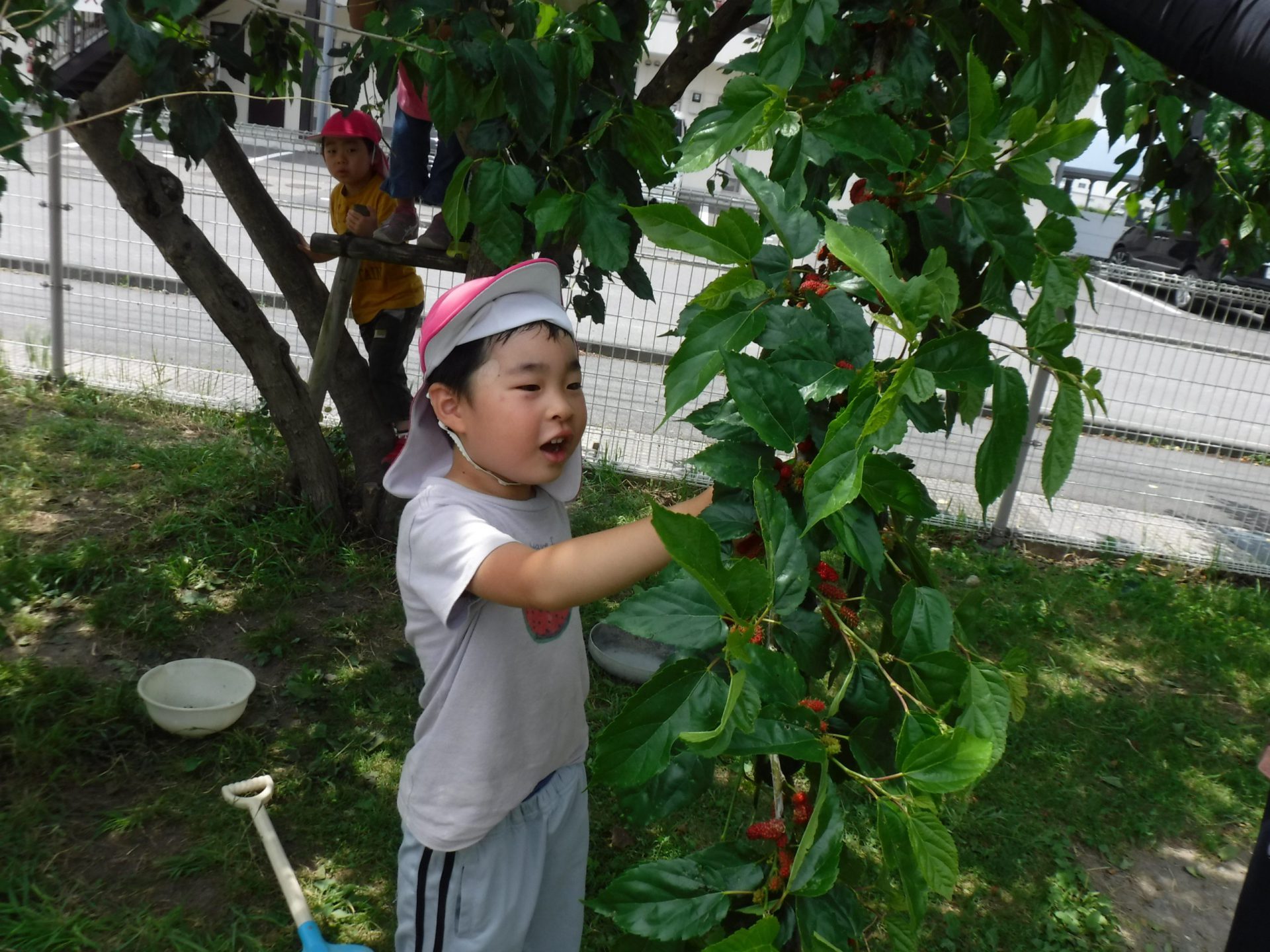 園庭の桑の木に実がいっぱいなりました。