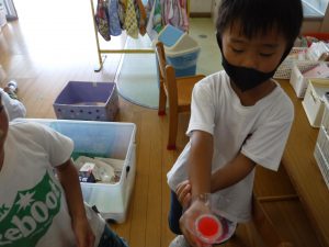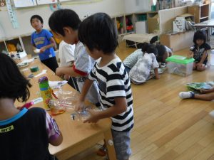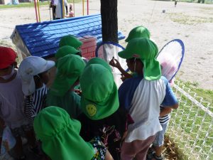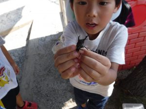 クワガタの好きなものを調べて考えながら仕掛けを作ったり、捕まえた後は命を大切にしようと世話をする姿がありました。子どもたちの「やってみたい」という思いを大切にすることで、考える力や命を大切にする気持ちが育ったように感じうれしく思います。これからも子どもたちの興味を大切に保育していきたいと思います。