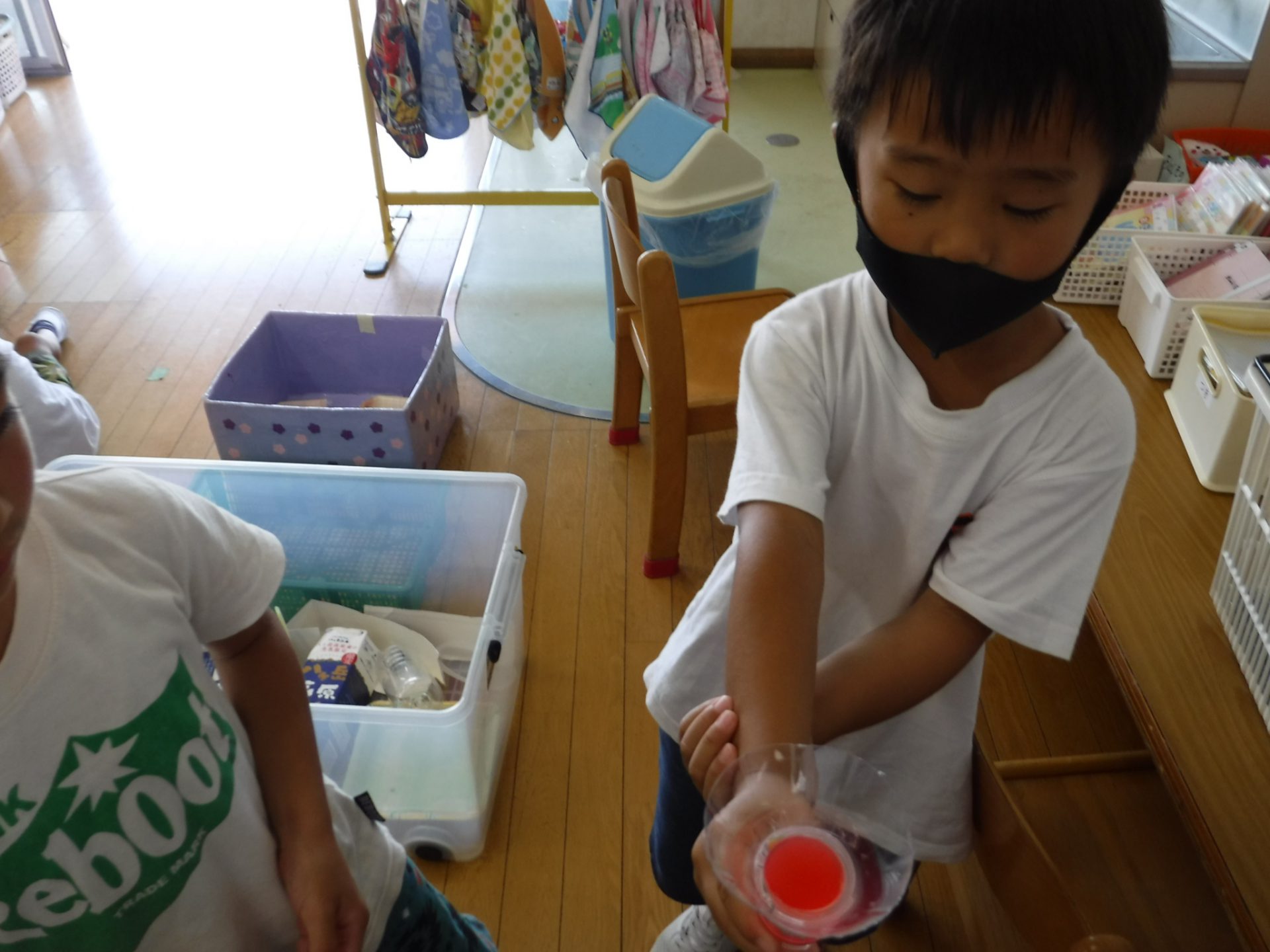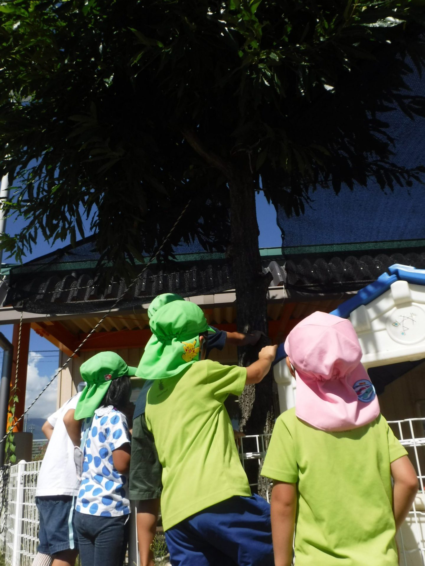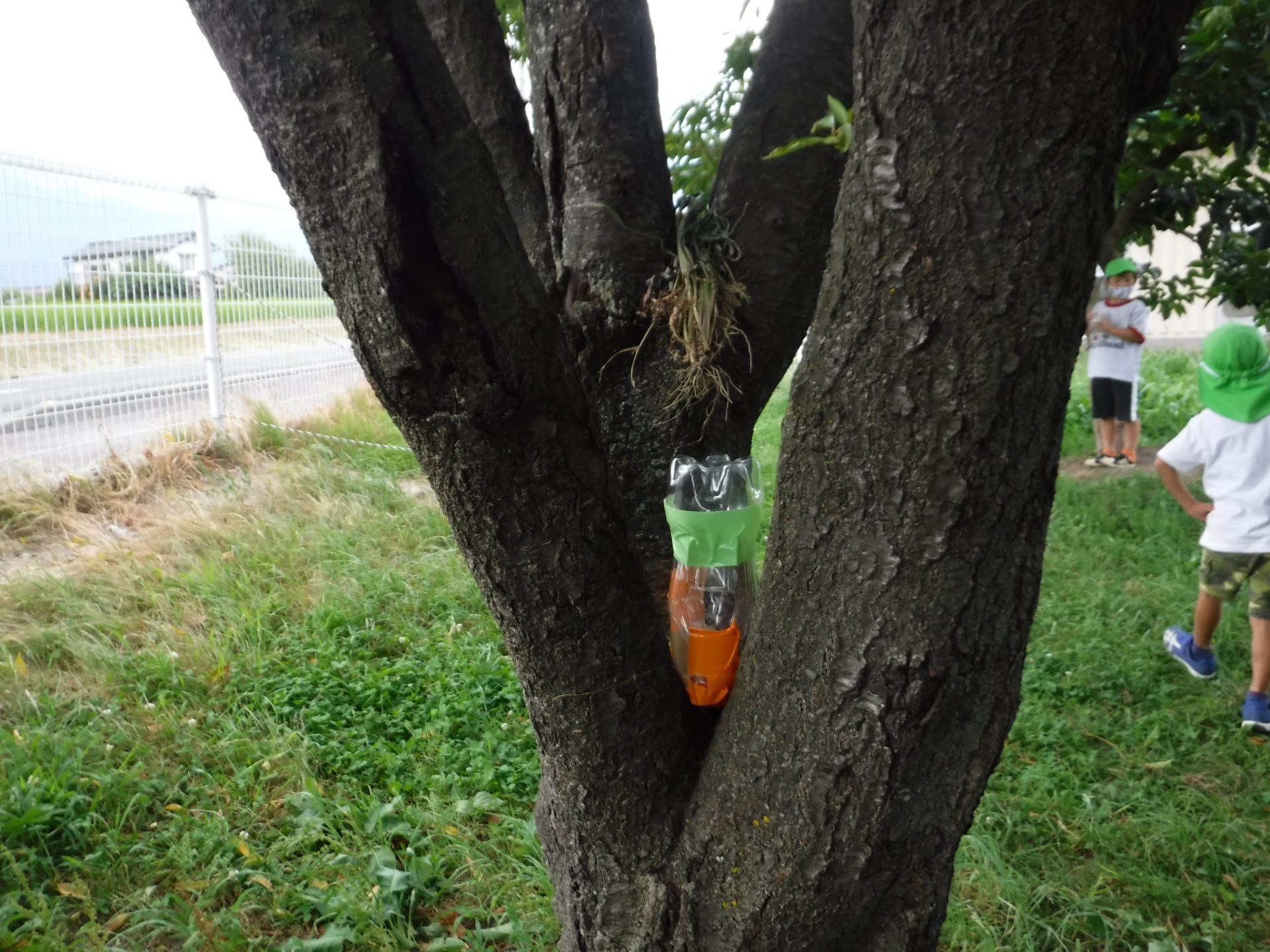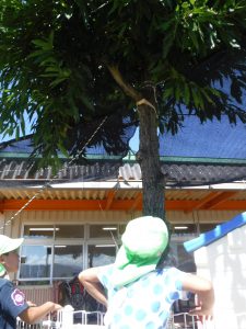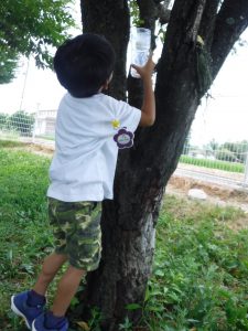 最初は「こども園には来ないよ」「クワガタが来る木がないもん」とあきらめていましたが、「捕まえてみたい!」とクワガタを捕まえるための仕掛け作りを始めました。