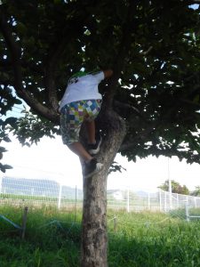 「できた!!」早速木に仕掛けを取り付けに行きました。