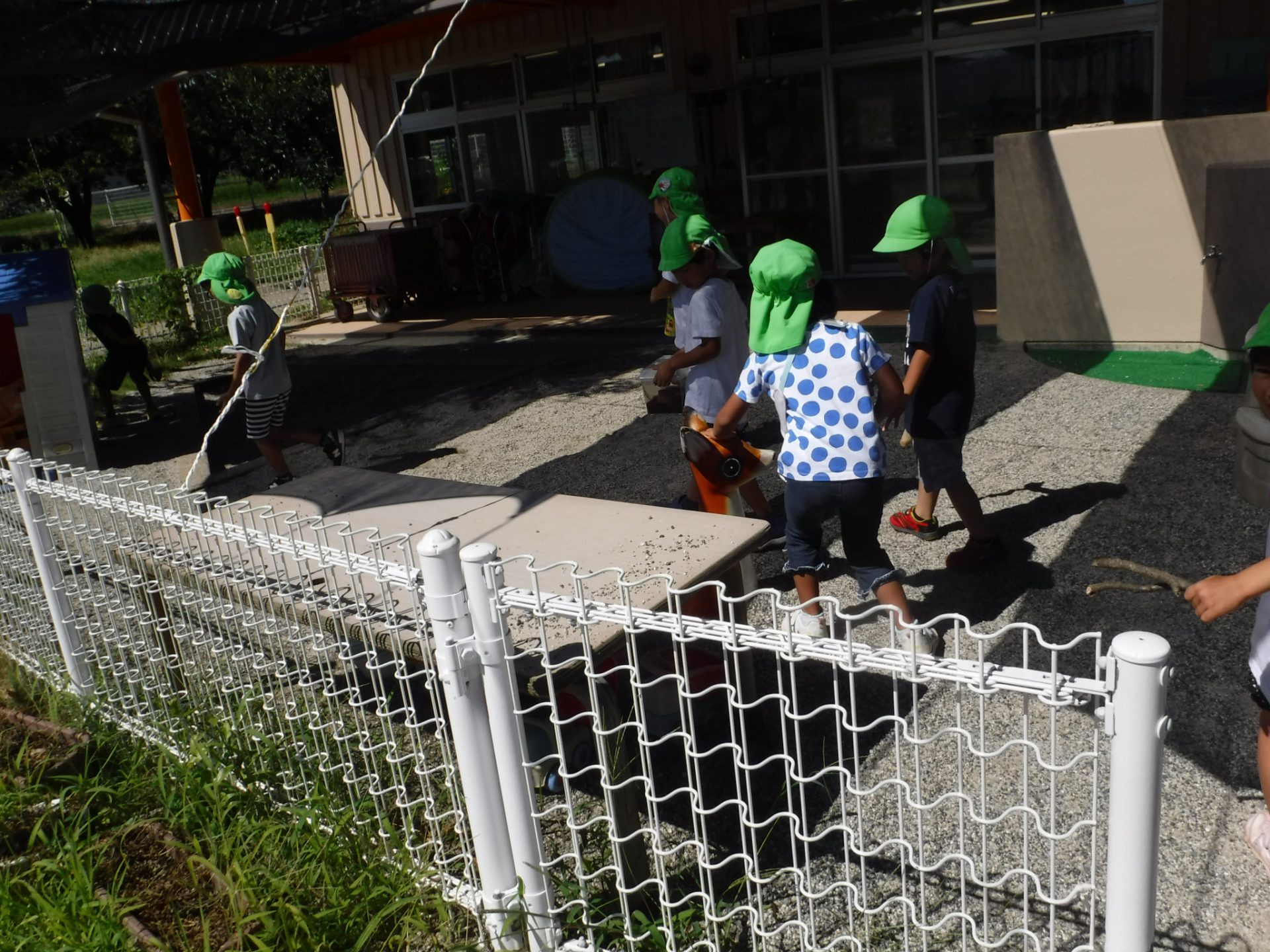 未満児の先生に許可を得たので「おじゃましまーす!」と餌を仕掛けに入らせてもらいました。