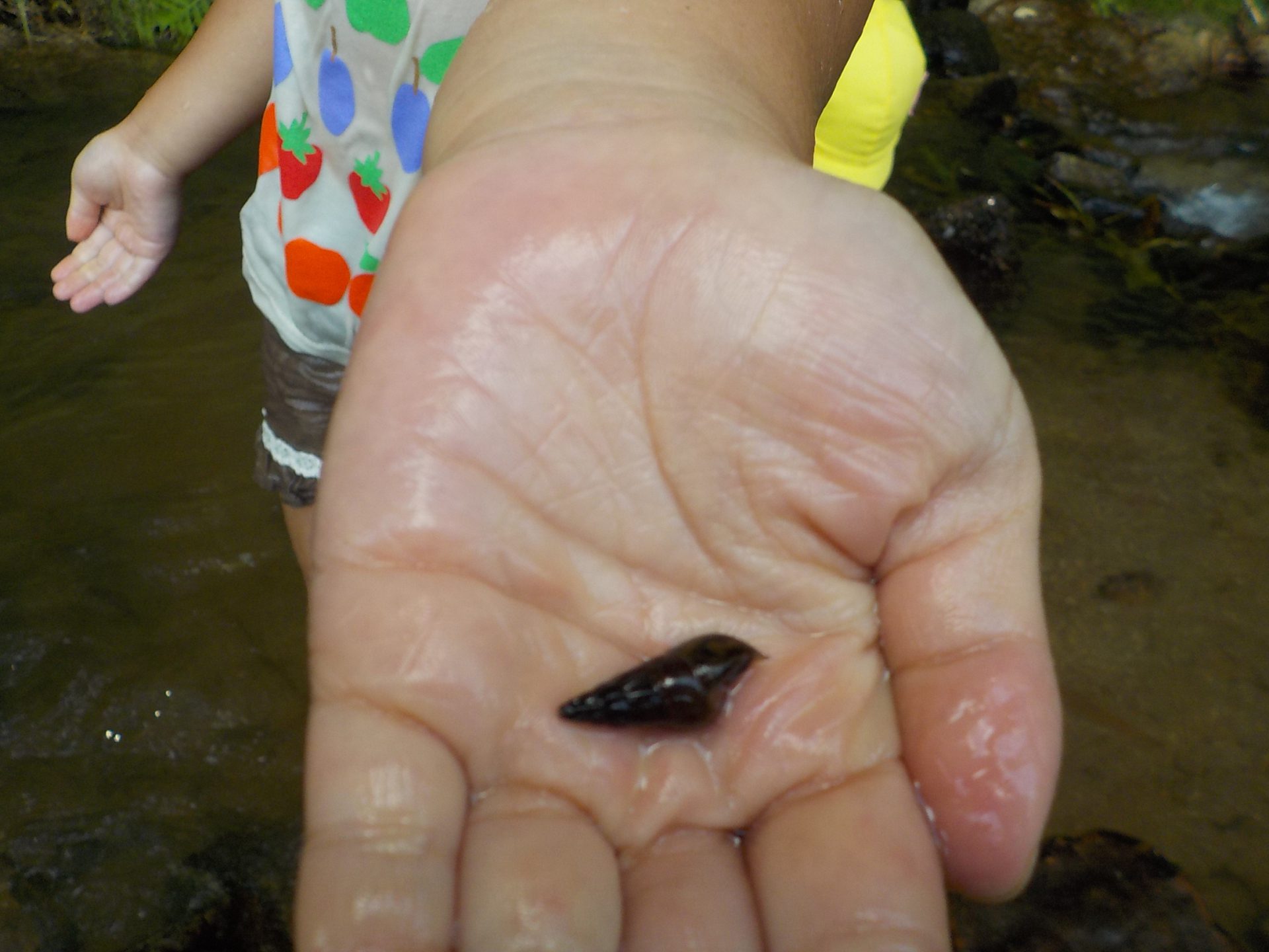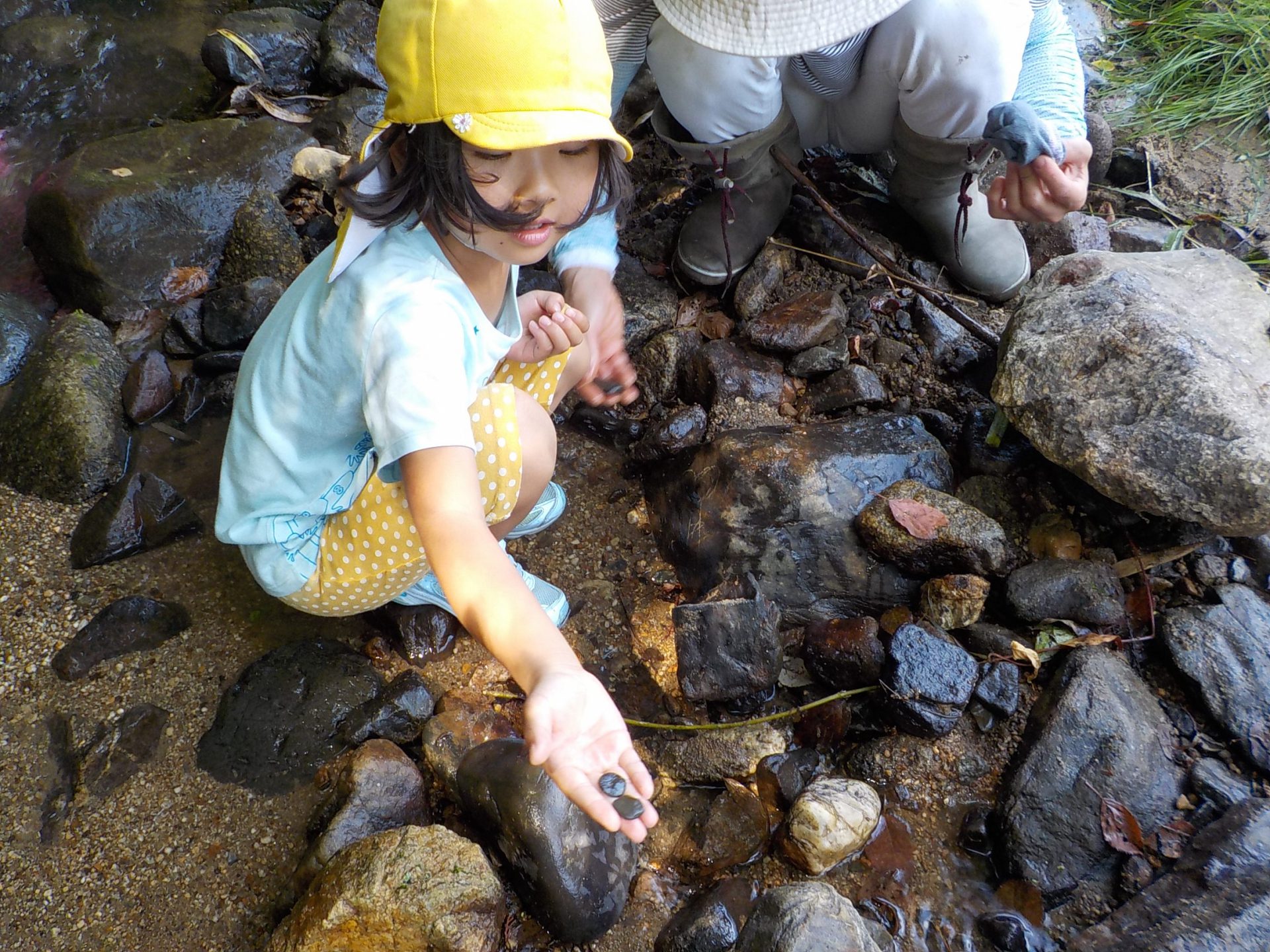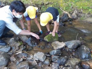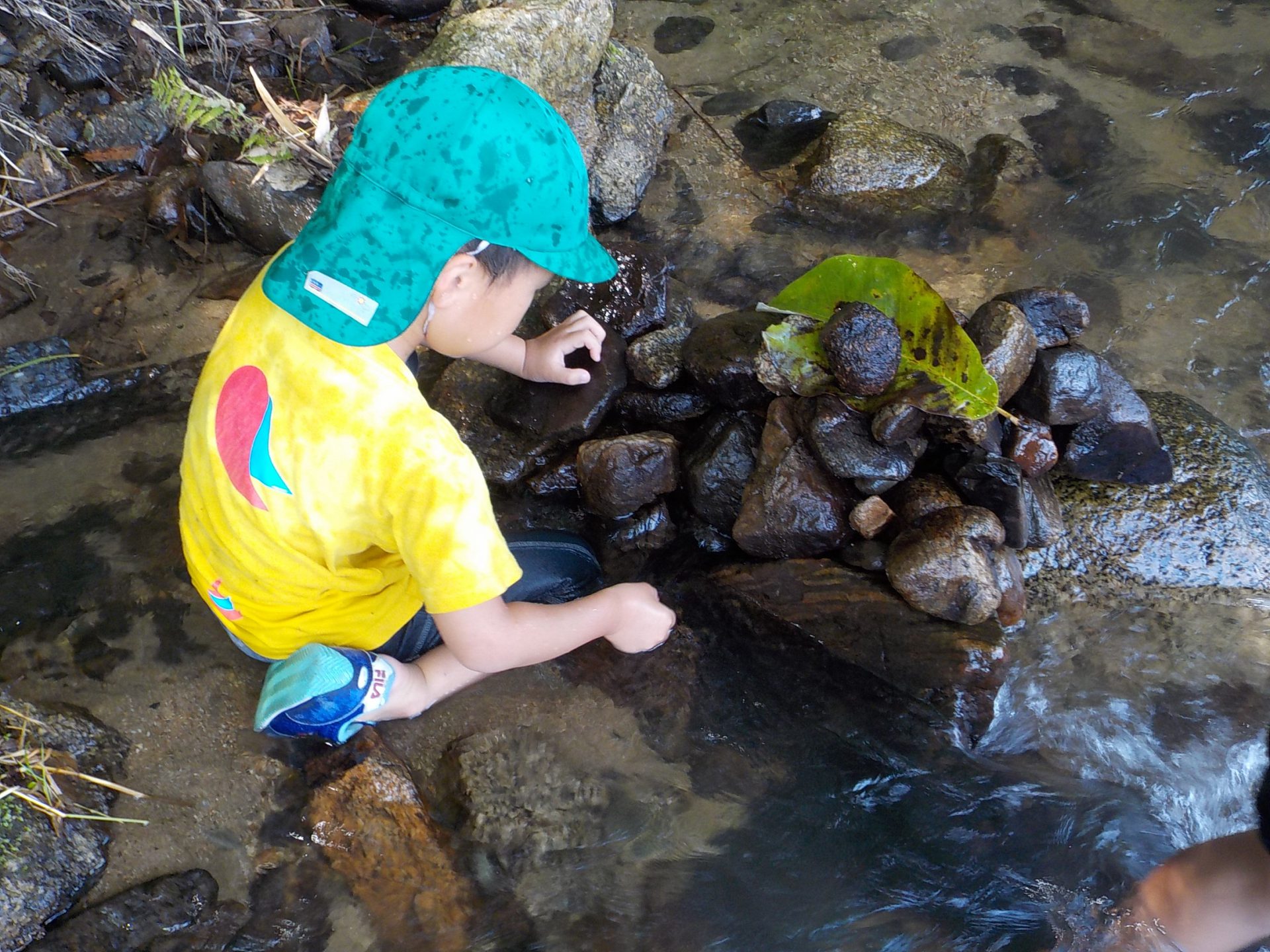 何がいるかな~? 川の石をゆっくり動かしてみます。