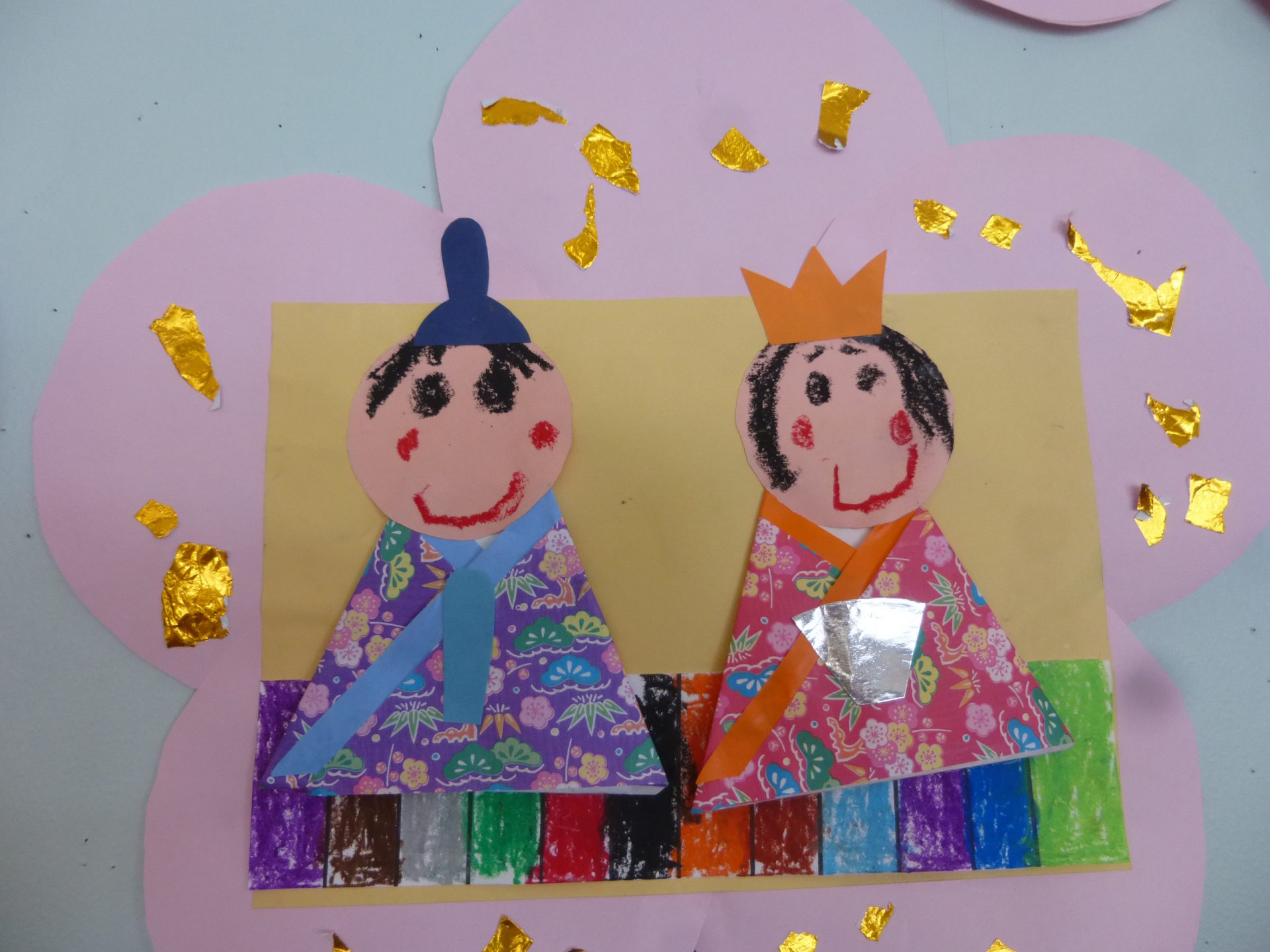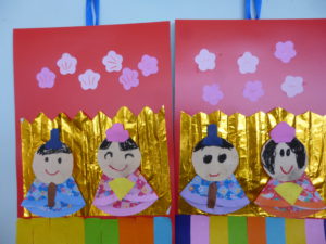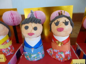 子ども達が作った手作りひな人形も子ども達を見守ってくれています。