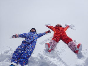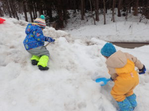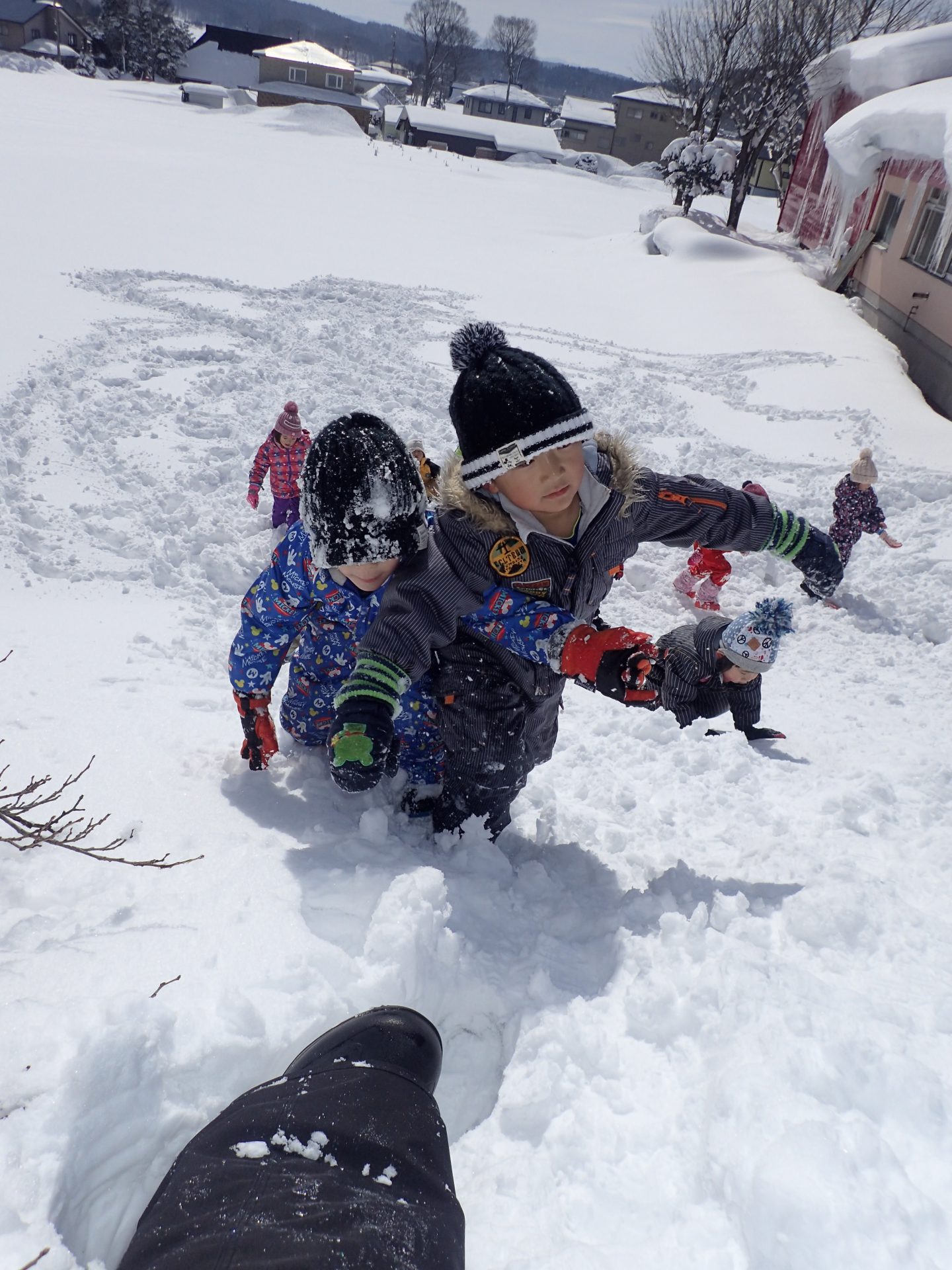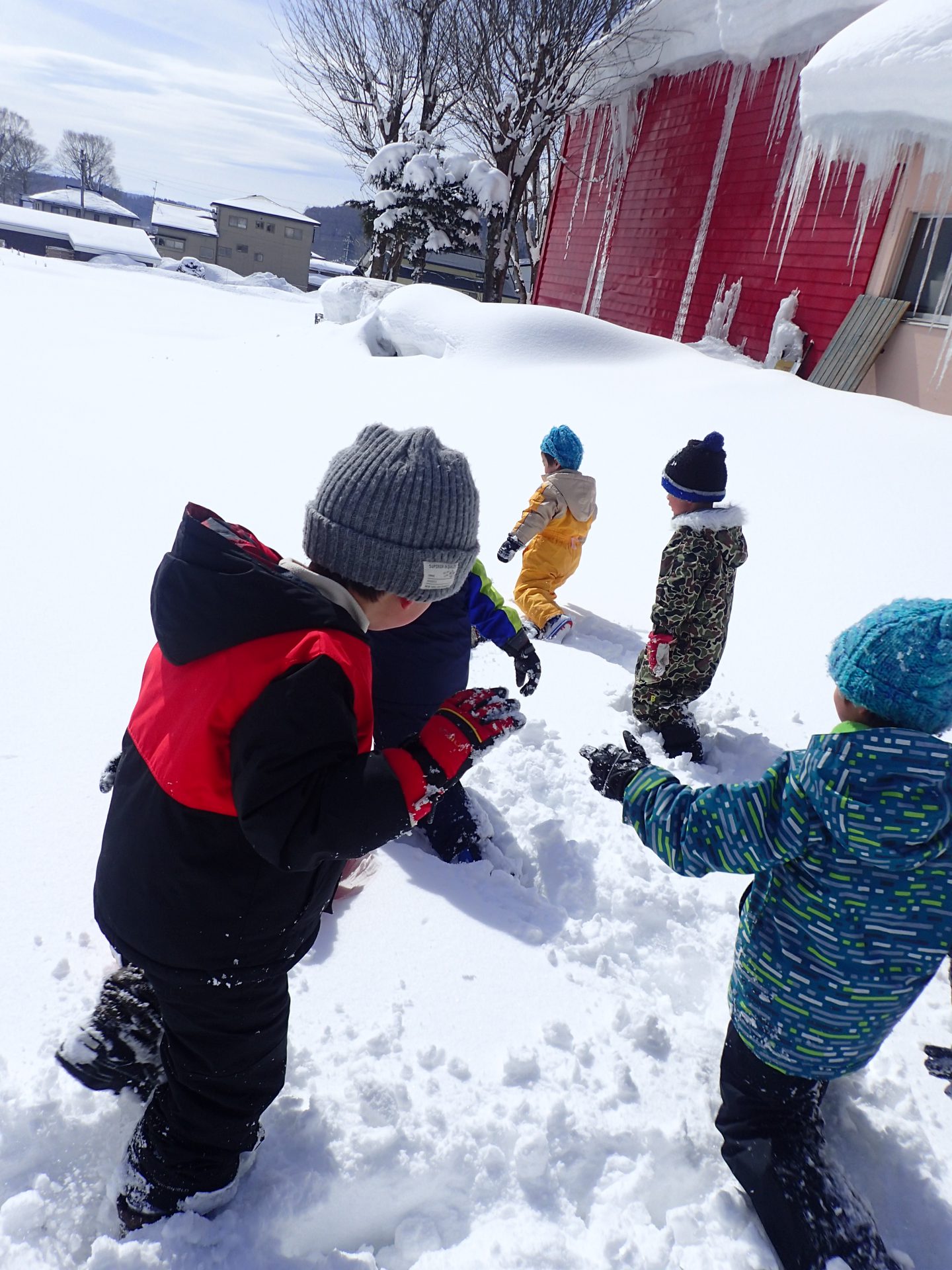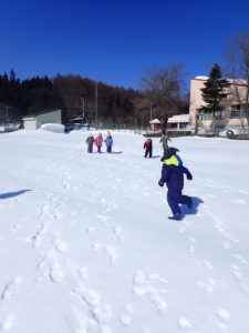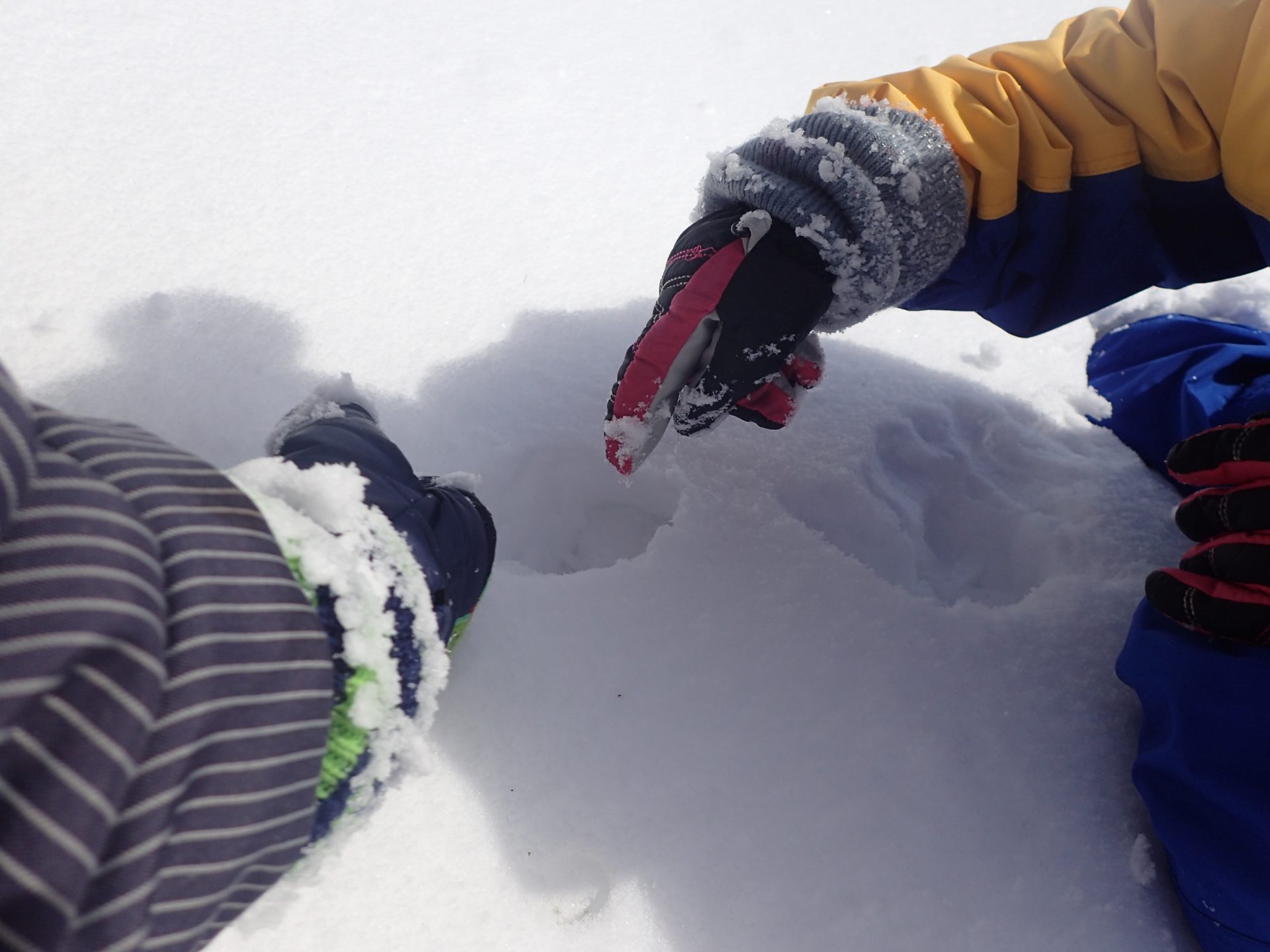 真っ白な雪の上に型が付くことに気が付き楽しんでいました。