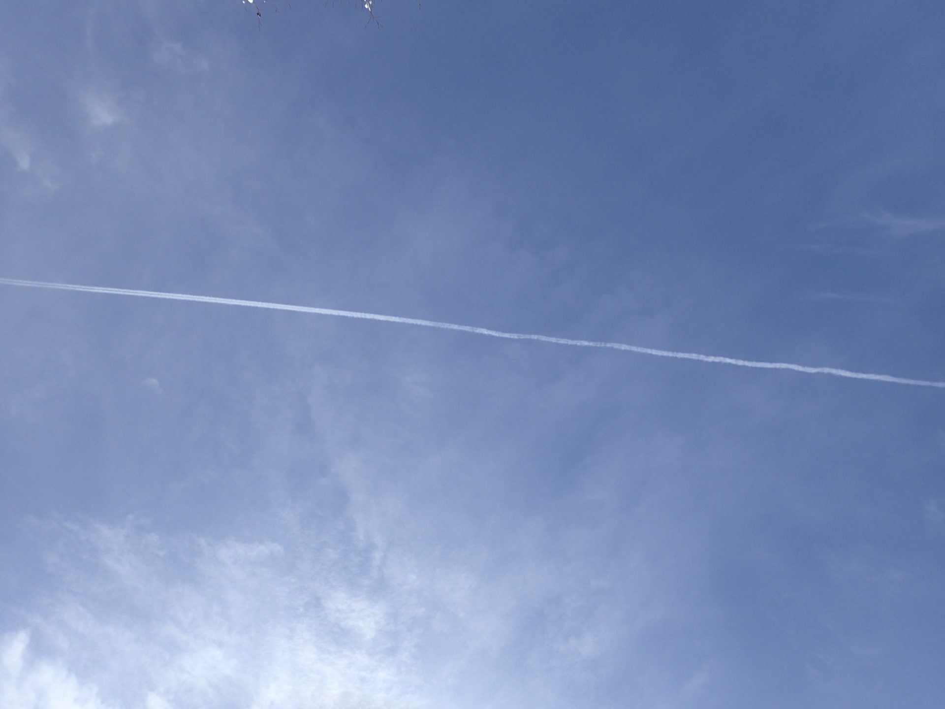 「お空見て、天気の良い日は、飛行機の雲もよ~く見えるんだね!!」