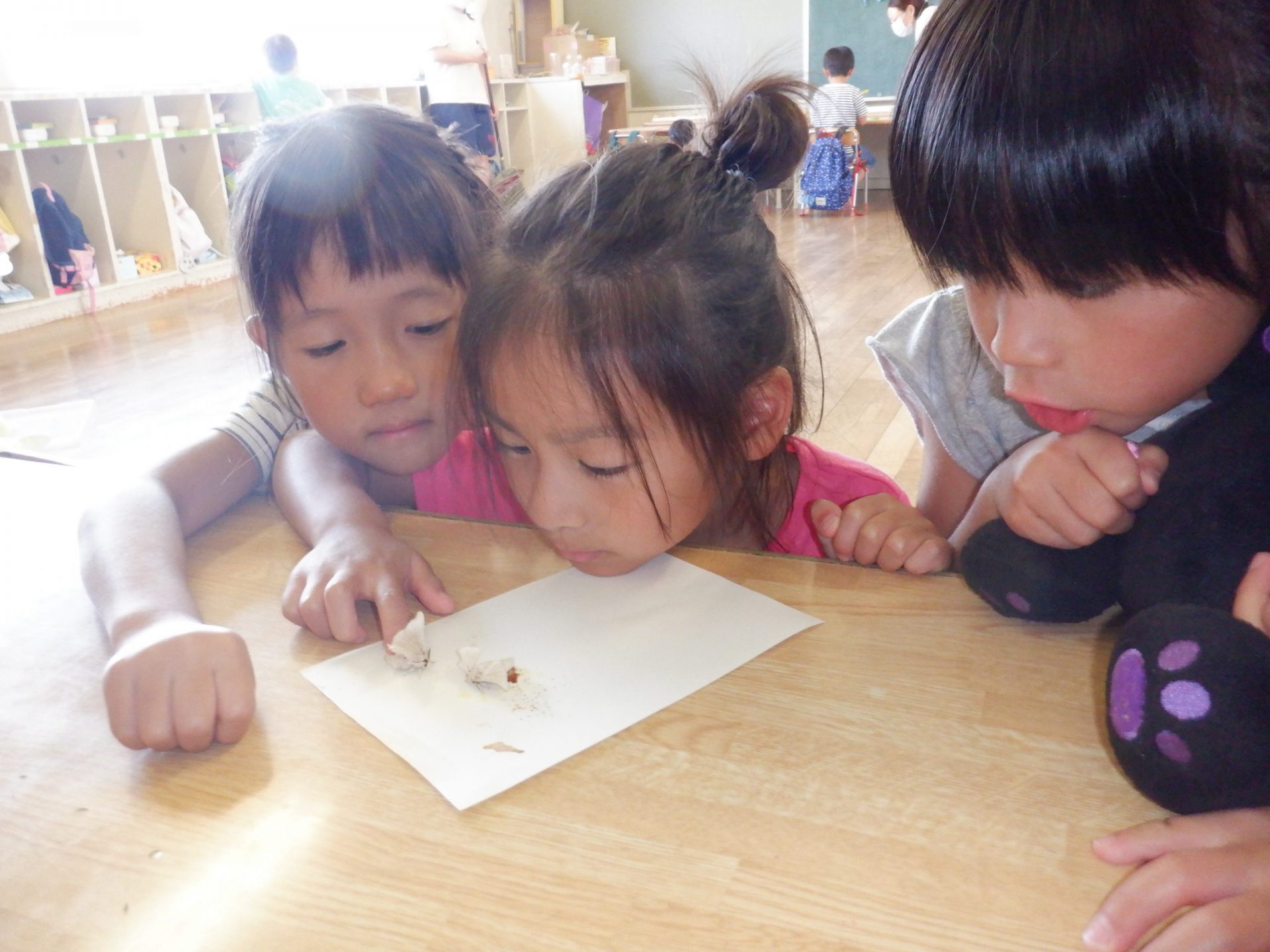 と、まだまだ おかいこさまを育てる気満々のエルマー組の子ども達ですが、残念なことに卵は来年の春にならないと孵化しないようです。