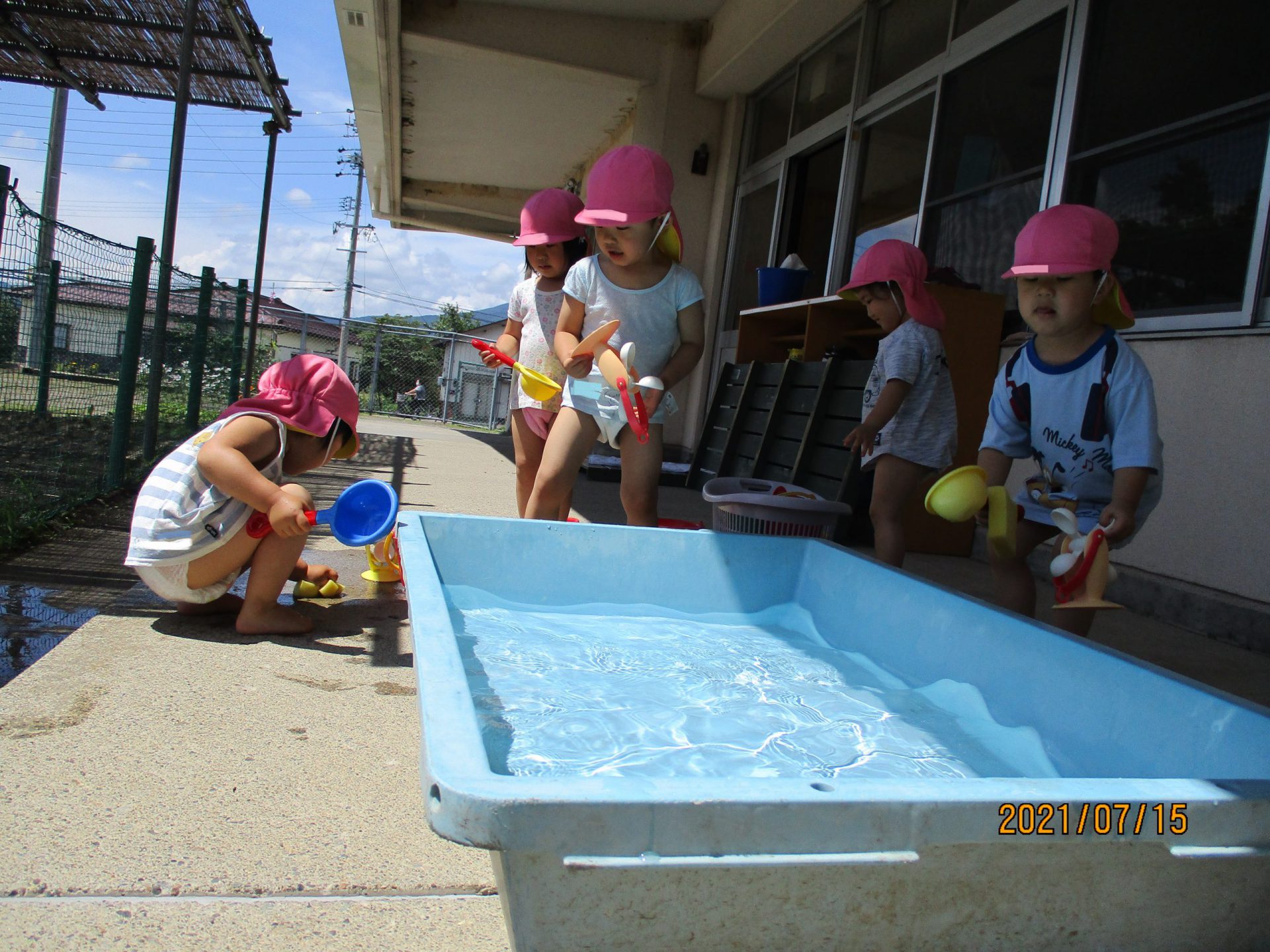 今年もついに夏がやってきました。驚きの暑さですが、そんなこと子どもたちはおかまいなし!夏ならではの水遊びに大興奮、元気いっぱいで遊んでいます。