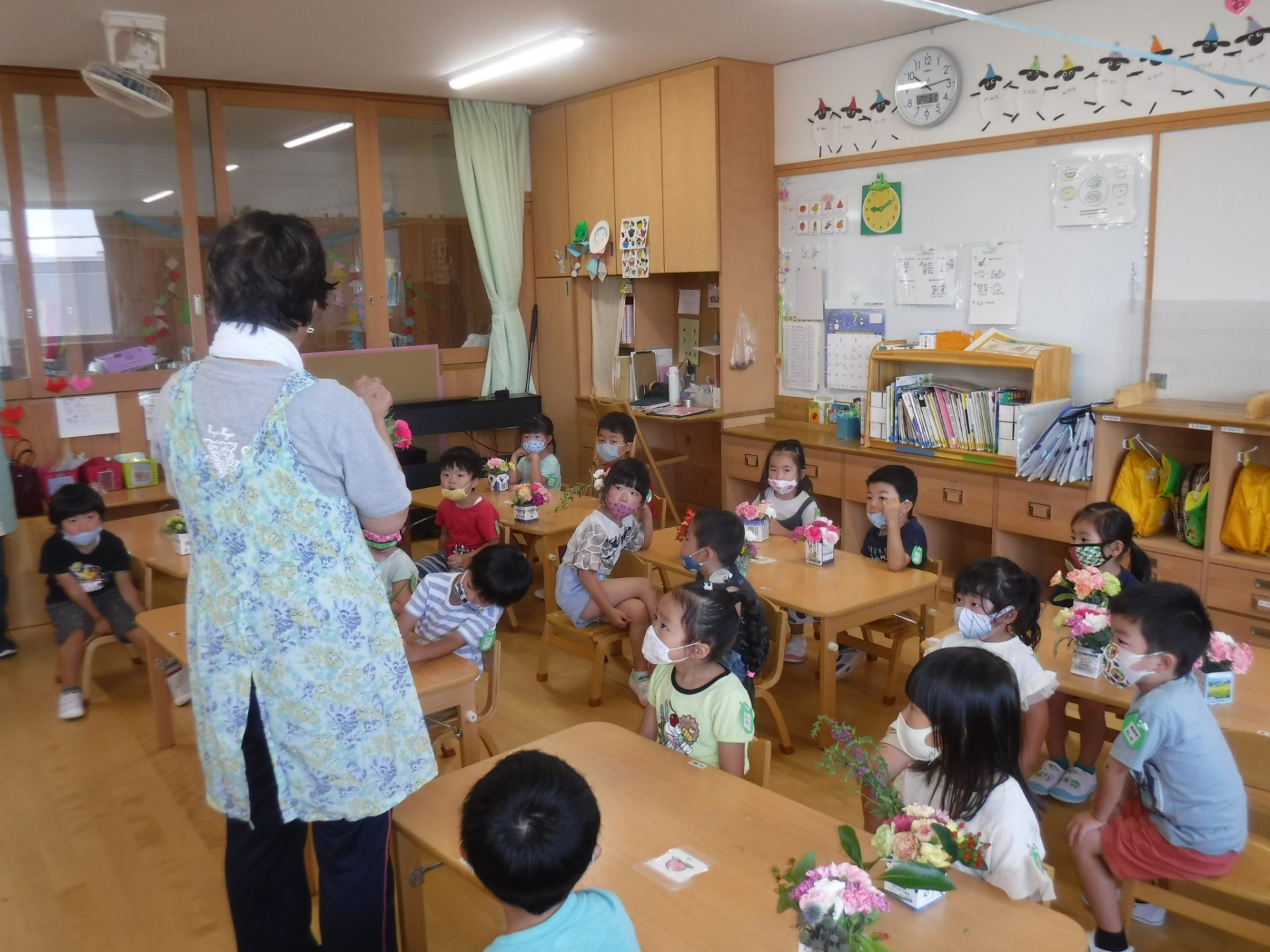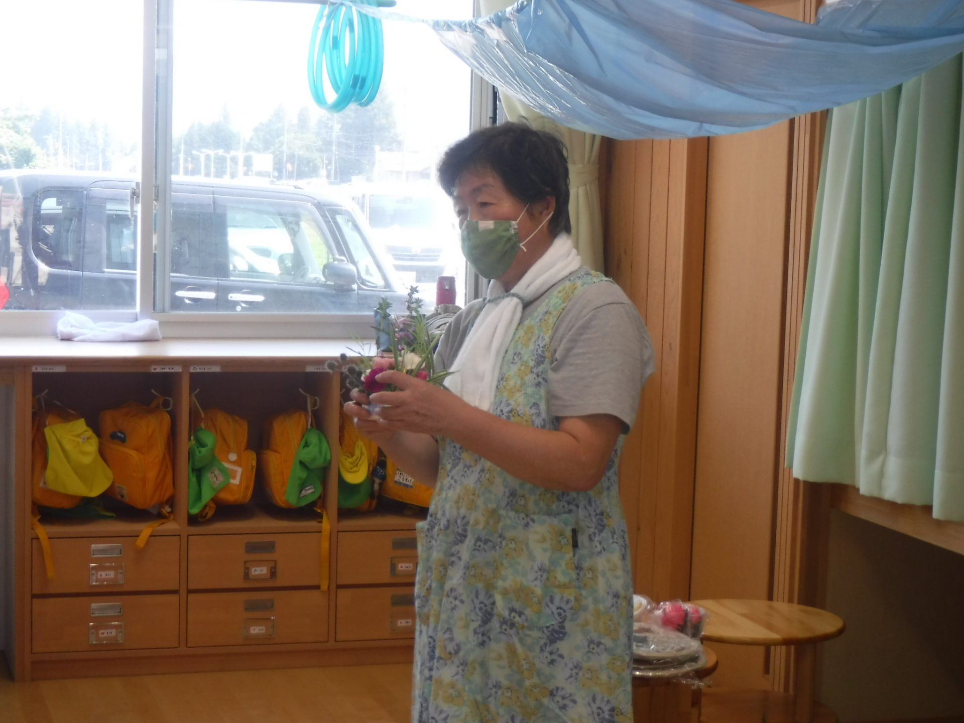 地域の方のお誘いによって子どもたちの感性がみがかれ良い時間となりました。「きれいにできたね」「すてきだね」と、声をかけてもらいとてもうれしそうな子どもたちでした。地域の方とのつながりをこれからも大切にしていきたいと思います。