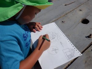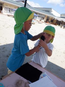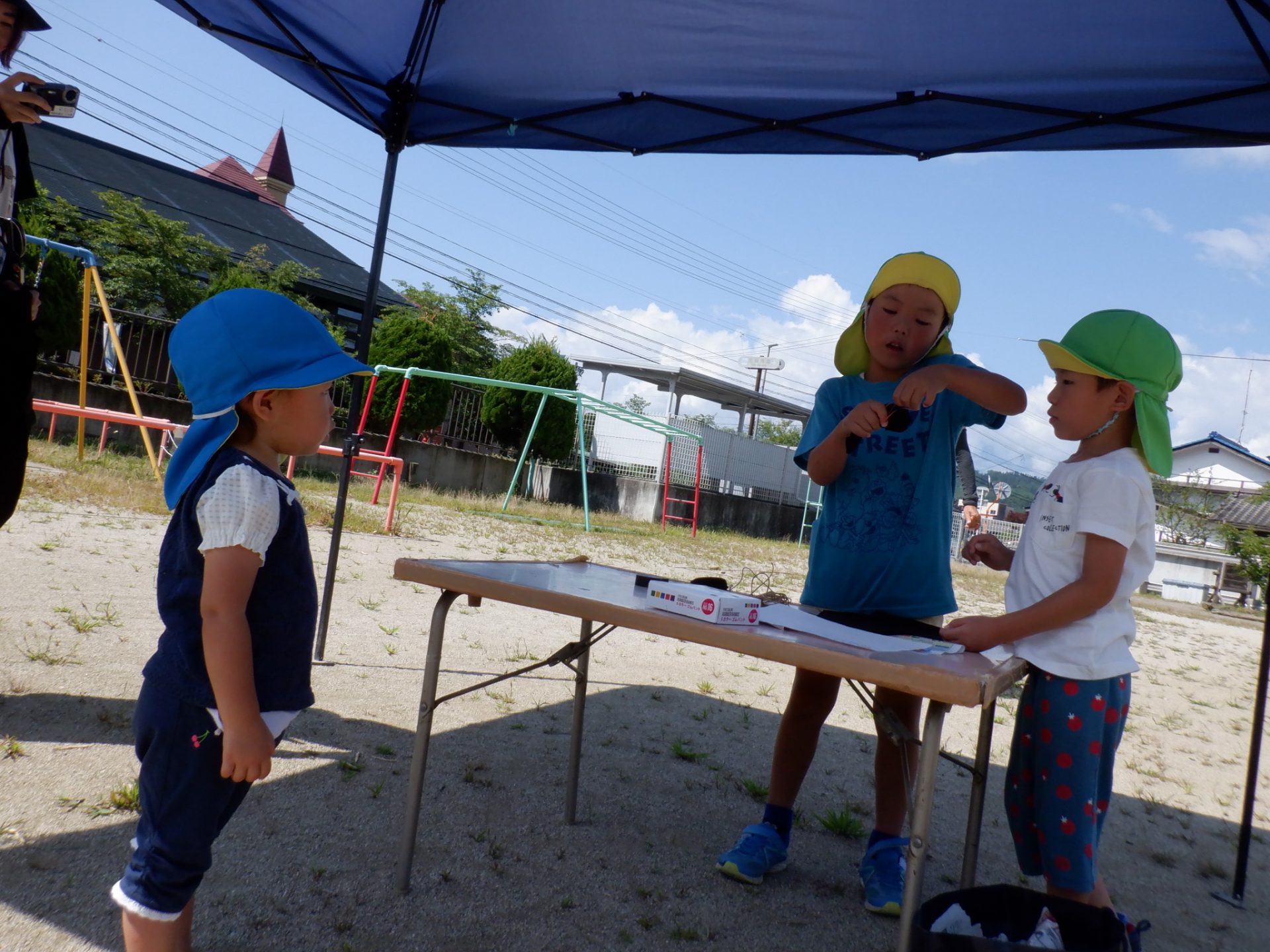 当園の明科地域は、縄文土器が眠る歴史のある地域です。園舎の下から発掘された「縄文土器」、まだまだ園庭には縄文土器が埋まっているというお話を聞き、実際に発掘された「縄文土器」を市の文化財を管理している方にお話を聞いたり実際に埋まっていた「縄文土器」を見せてもらいました。