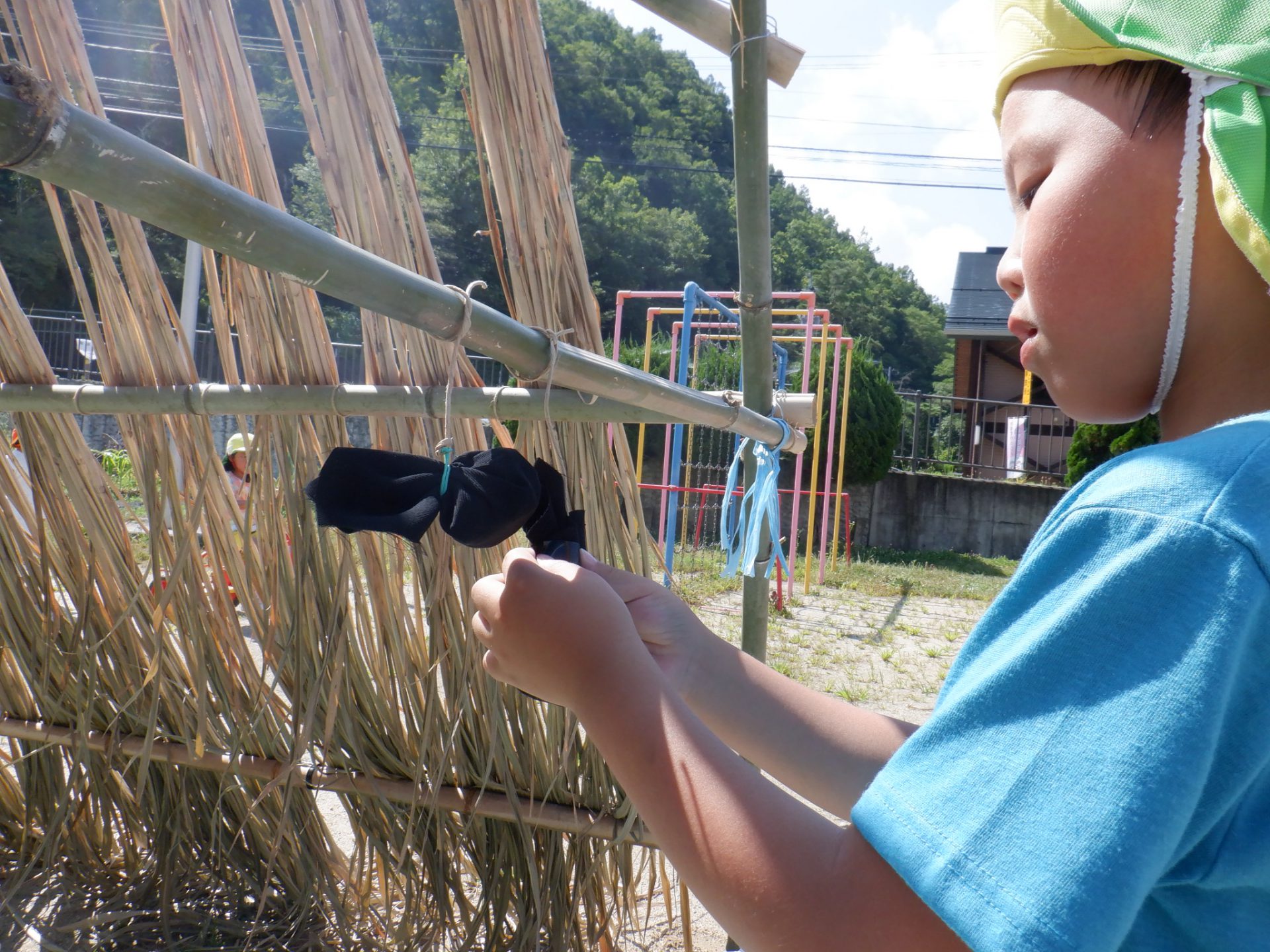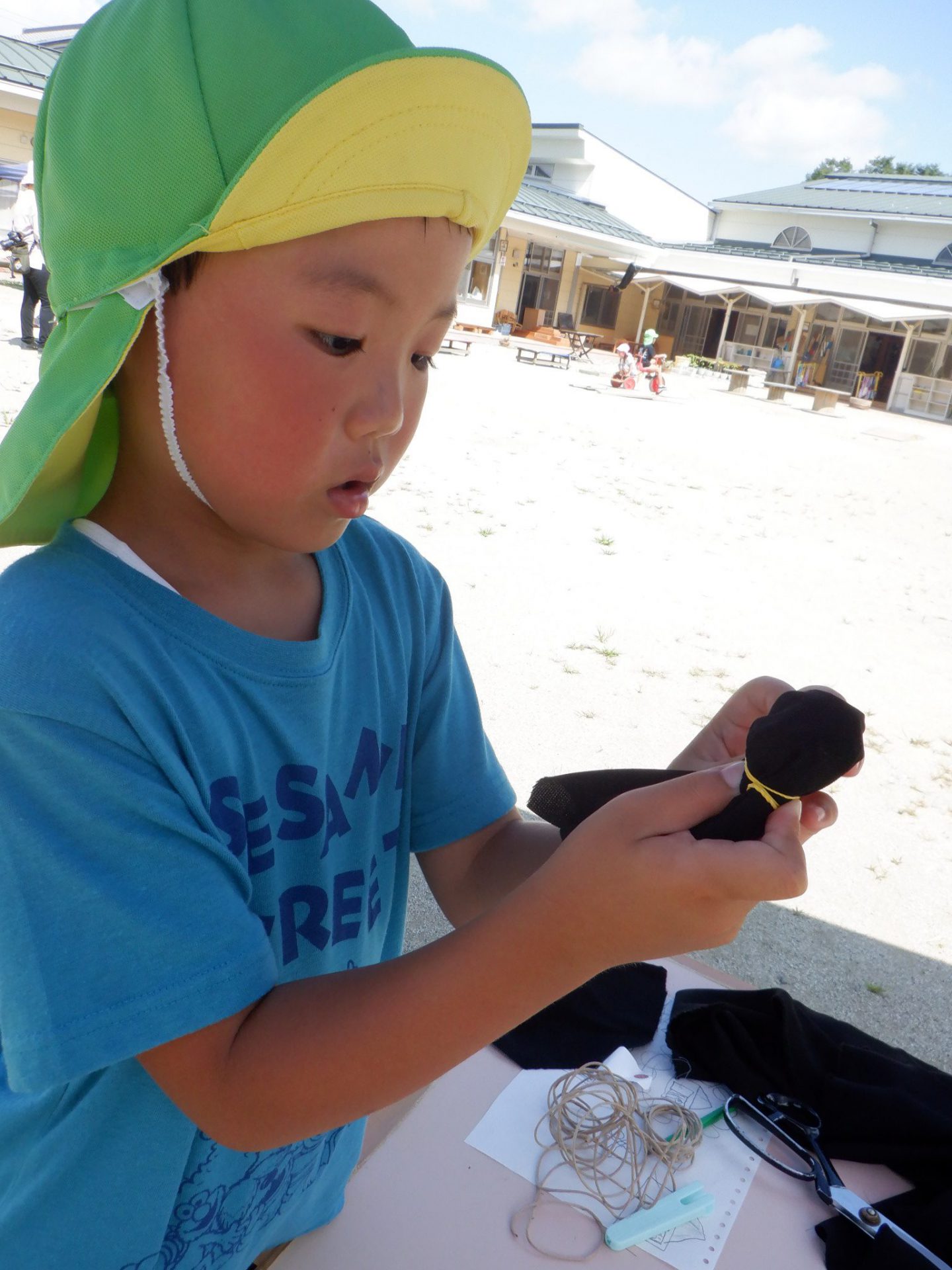 ただの‟てるてる坊主”ではありません。たくさん雨が降るように真っ黒な布で!