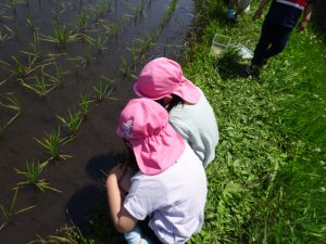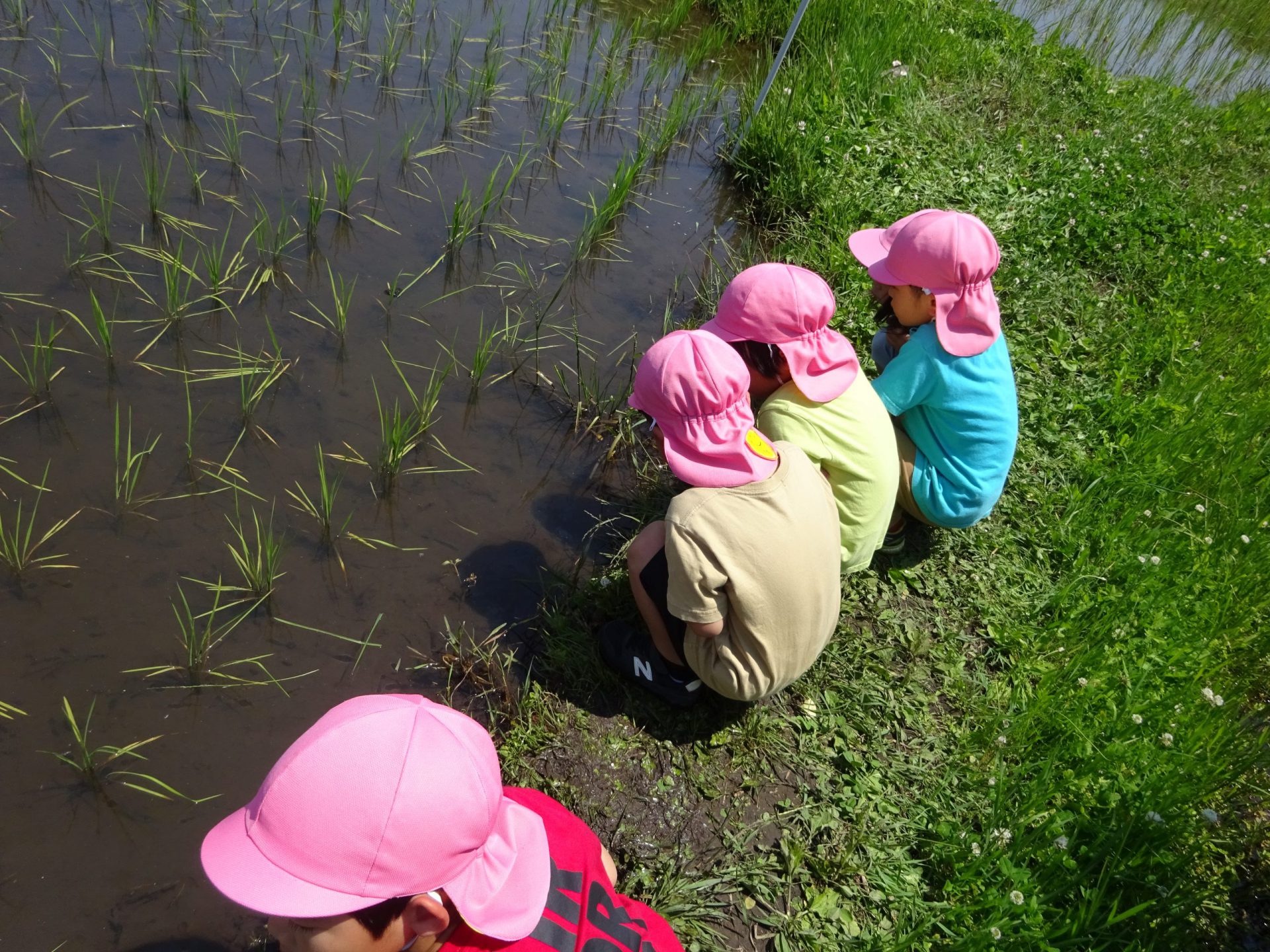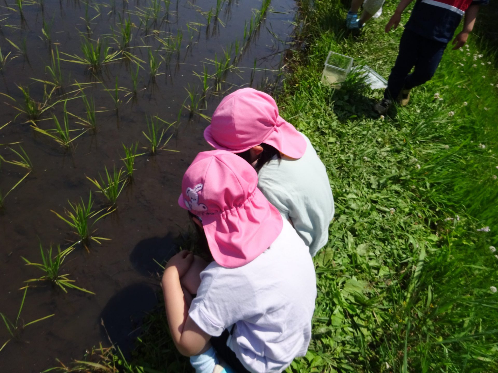 「うちのたんぼにもいるよ」と教えてくれる子がおり、みんなで捕まえに行くことにしました。