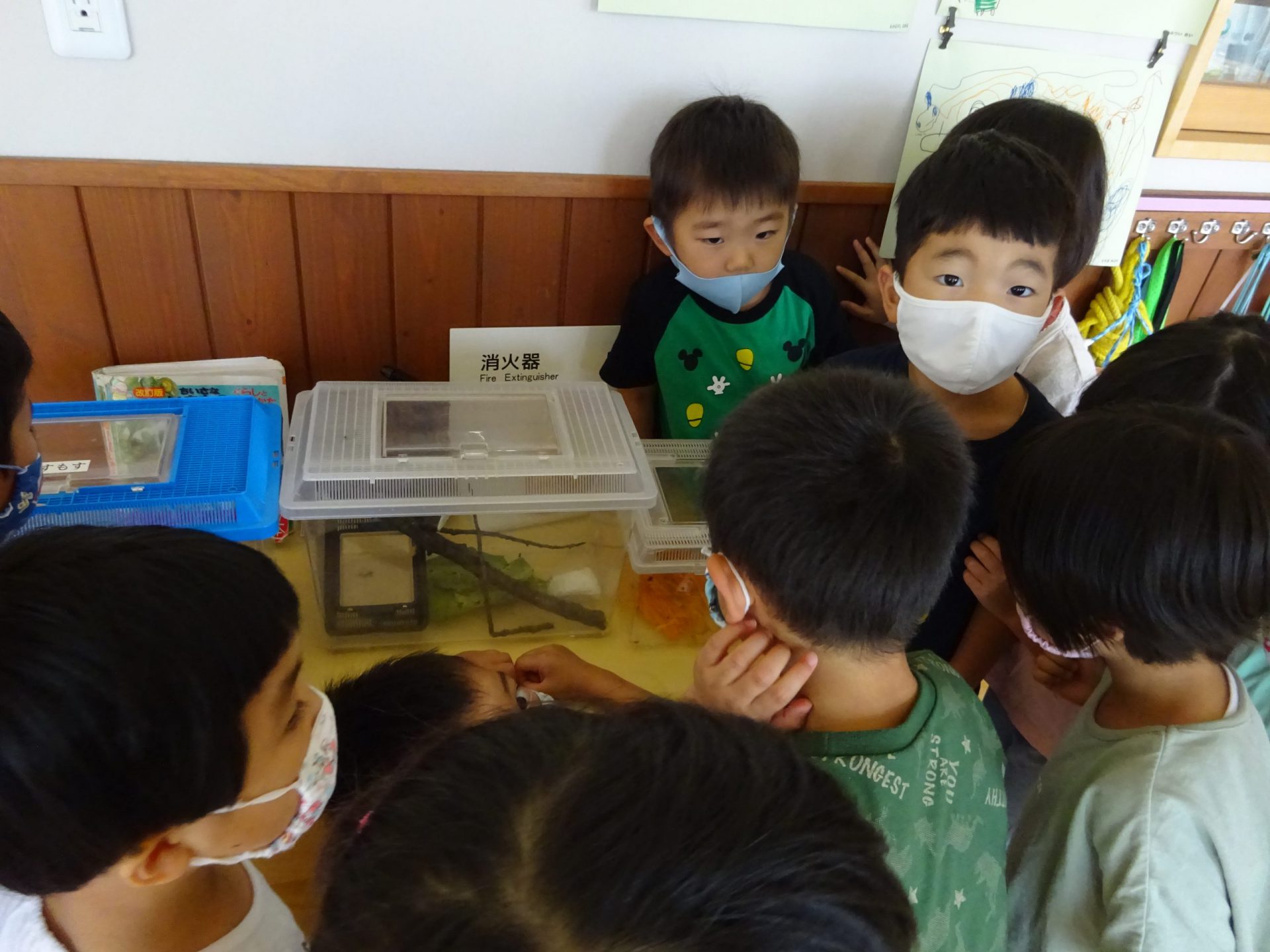 身の回りにいる生き物を飼ったことで、食べるものを調べたり、毎朝様子を見たり興味を持って観察し、成長するにつれて姿が変わることに感動していました。その話を他クラスの子どもや先生に報告をしたりする姿もあり、子ども達にとって良い経験になったのだと感じました。