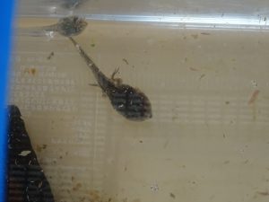 「おおきくなってる!」「あしがでてきた!」「ちょっときょうげんきないね」「ごはんもたべるんだって」「てもでてくるの?」と箱をのぞきながら友達と話し合っていました。