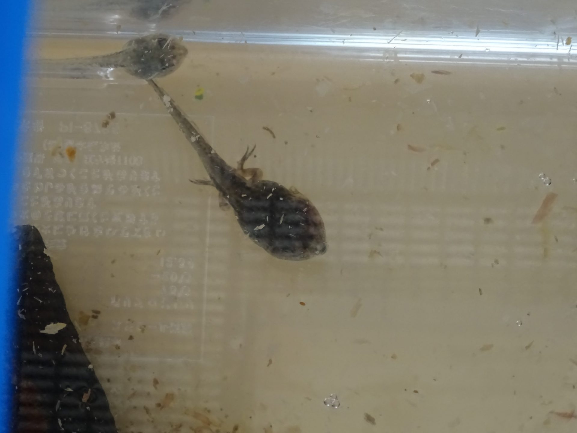 おたまじゃくしも足が生え、カエルになり続々と元気にお庭に旅立っています。