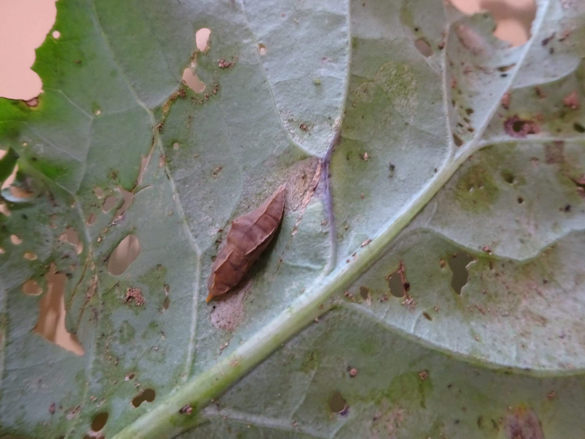 幼虫が蛹になると動かないので「しんじゃったの?」「ほんとにちょうちょうになるの?」と心配したり、不思議そうにしたりして見ていました。